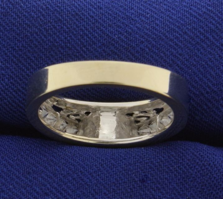 In 14k white gold. Contains 15 high quality .07ct diamonds - SI clarity/H color, great cut with lots of sparkle. Center seven diamonds are invisible set so it looks like one large 1.5 ct diamond. Size 7 1/4. 6.8g.