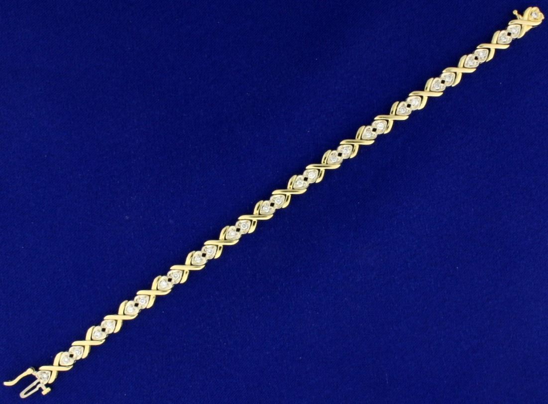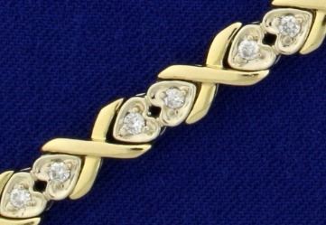 In 14k yellow gold. Contains thirty high quality diamonds, VS clarity/H color. 7 inches long. With Safety clasp. 13.2g.