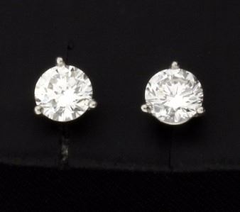 In 14K white gold, these earrings contain two high quality 1/2 ct diamonds, that are G color/SI1 clarity with excellent cut. They really sparkle. The 14K white gold 3 prong martini settings come with friction backs. 1.0g