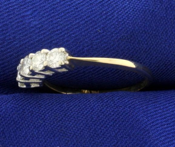 In 14k yellow gold. Contains five high quality .2ct round diamonds, SI1 clarity/G color, excellent cut. Diamonds are completely eye clean, very "white" and have lots of sparkle. Size 9 1/2. 2.5g.