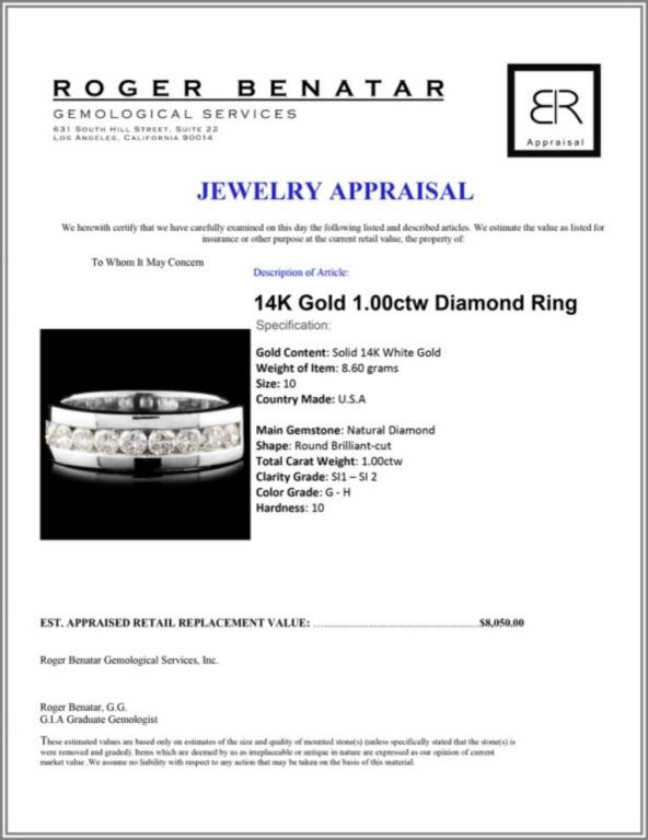 Regarding Appraised Jewelry and Loose Stones - Auctionfarm sends them out to a third party for Retail Replacement Value Appraisals, which are the most common. These types of evaluations are written for insurance needs. This would be the cost to replace the jewelry with an item of equal quality and kind, considered to be the current market price or the replacement value. This type of appraisal is done to protect you in the event of damage or loss of a valuable item. Our appraisals are conducted by independent 3rd Party appraisal firms that utilizes Certified GIA Gemologist. Appraisals should be used for verification of gemstone and/or metal weight, size, and grade only, not actual value. Appraisal value should be considered for insurance purposes only, not actual value, as price varies greatly from retail locations thru out the world. Items should not be purchased with the expectation to resell for appraisal price, or for profit.