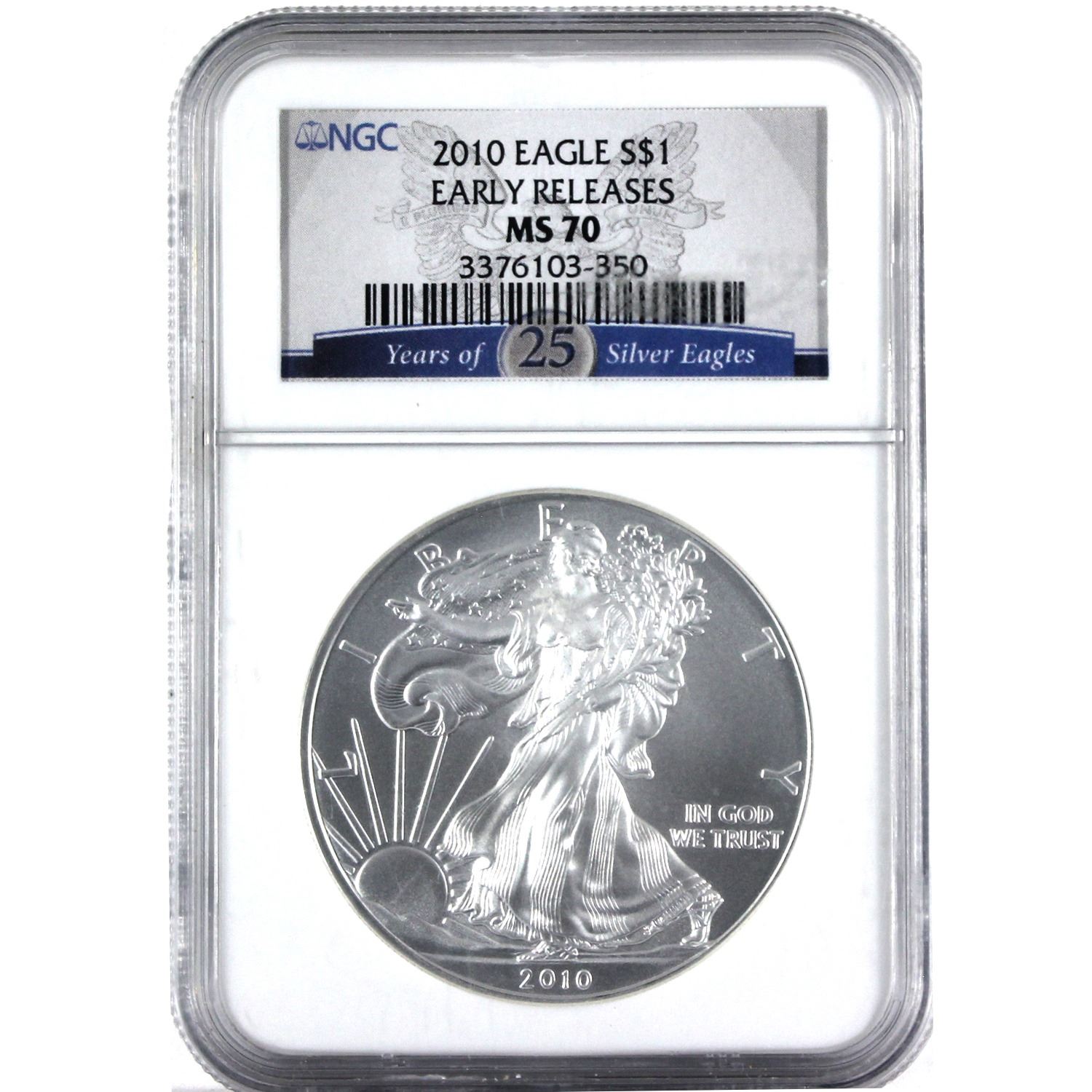 1oz 2010 USA $1 Silver Eagle, Early Releases, NGC Certified MS-70, .999 Silver Coin (Tax Exempt)