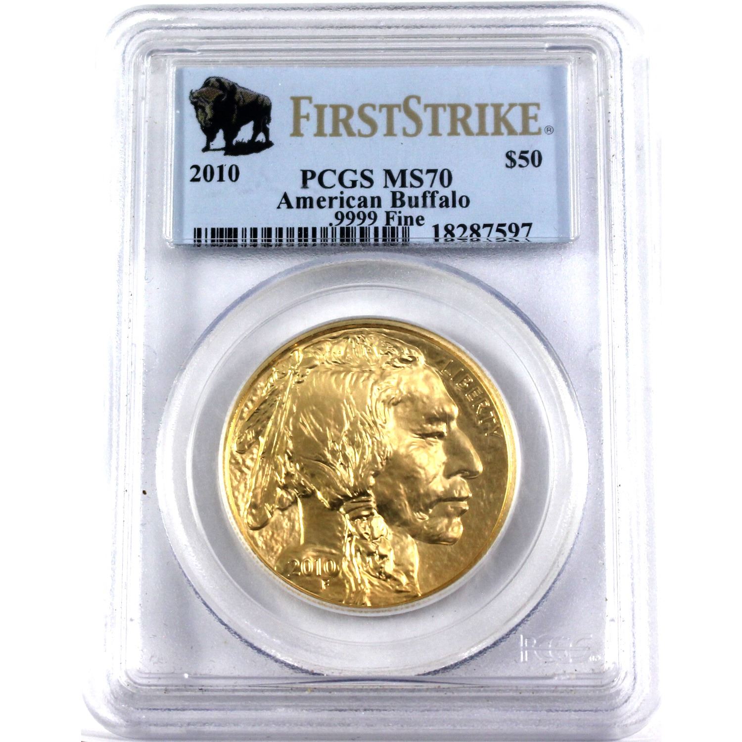 1oz 2010 USA $50 American Buffalo, First Strike, PCGS Cert. MS-70 .9999 Fine Gold Coin (Tax Exempt)