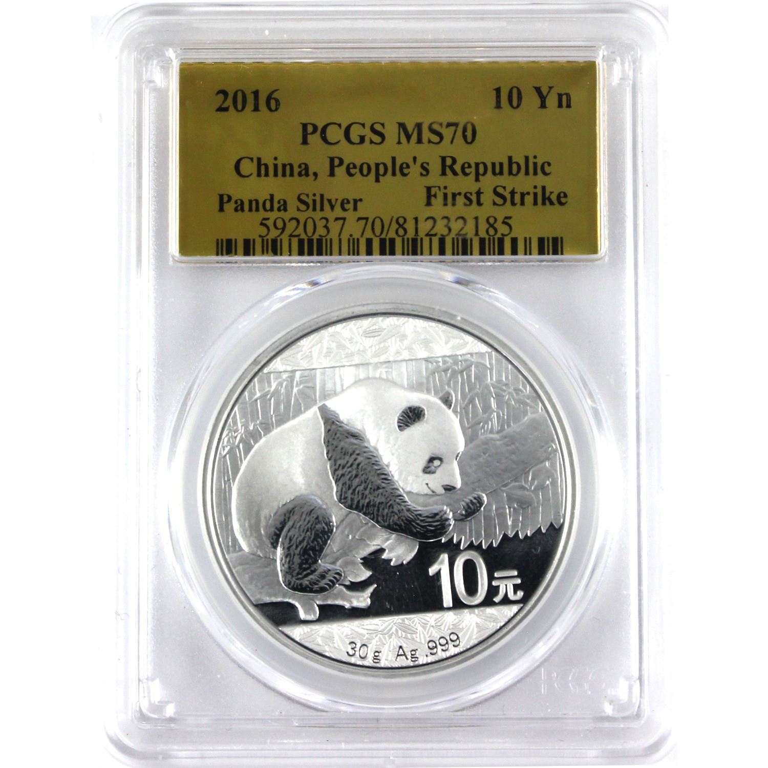 1oz 2016 China, PRC 10 Yuan, Panda, First Strike, PCGS Certified MS-70 .999 Silver Coin (Tax Exempt)
