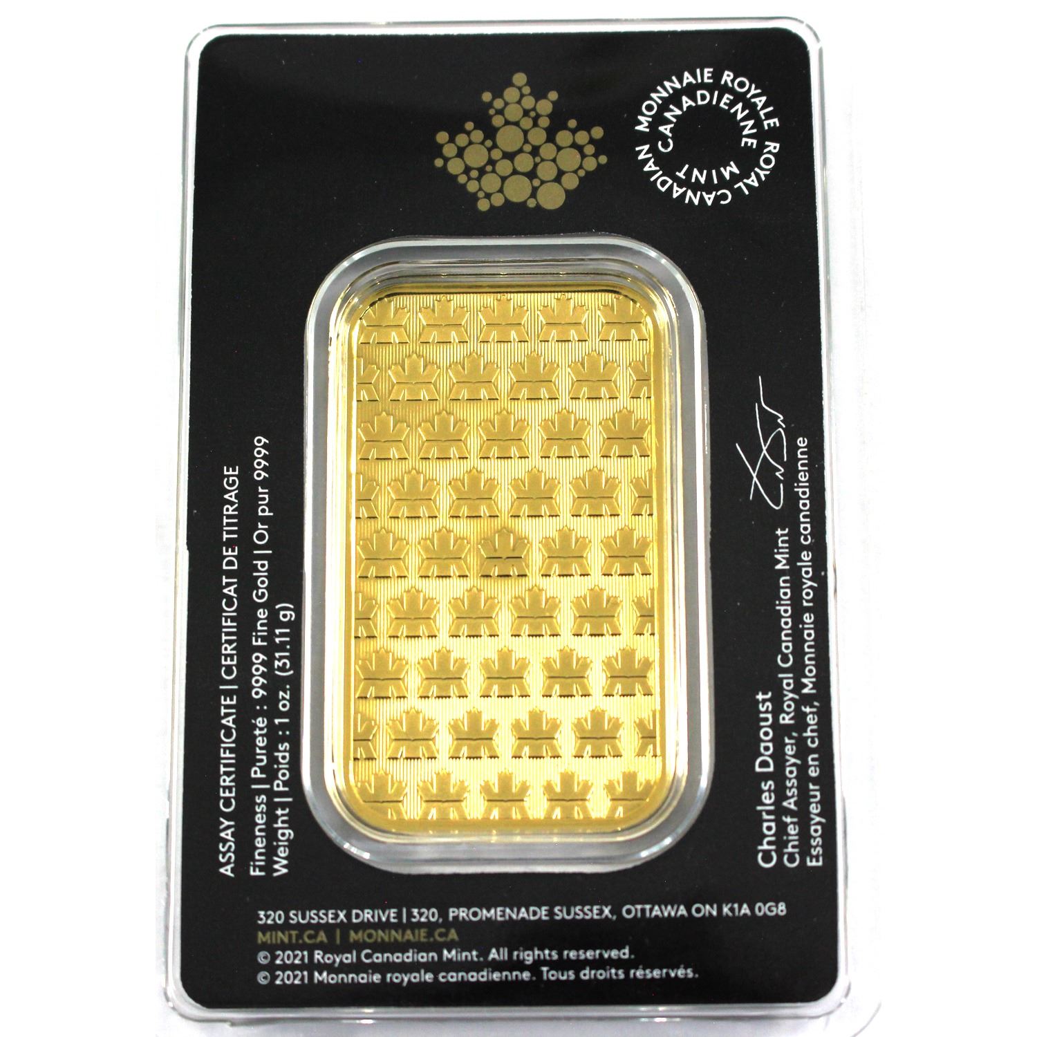 1oz Royal Canadian Mint .9999 Fine Gold Bar in Plastic Certificate Holder. (TAX Exempt)