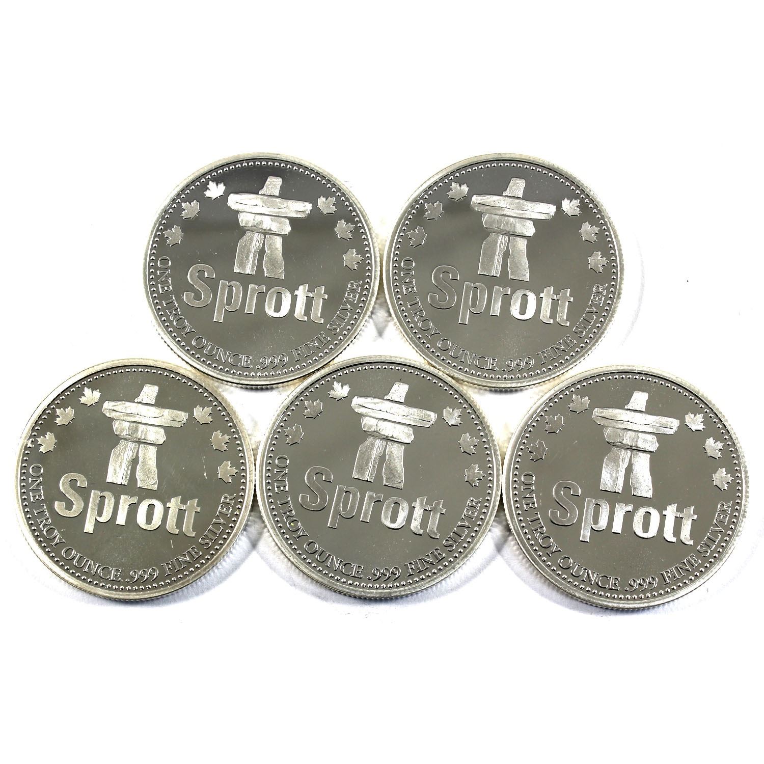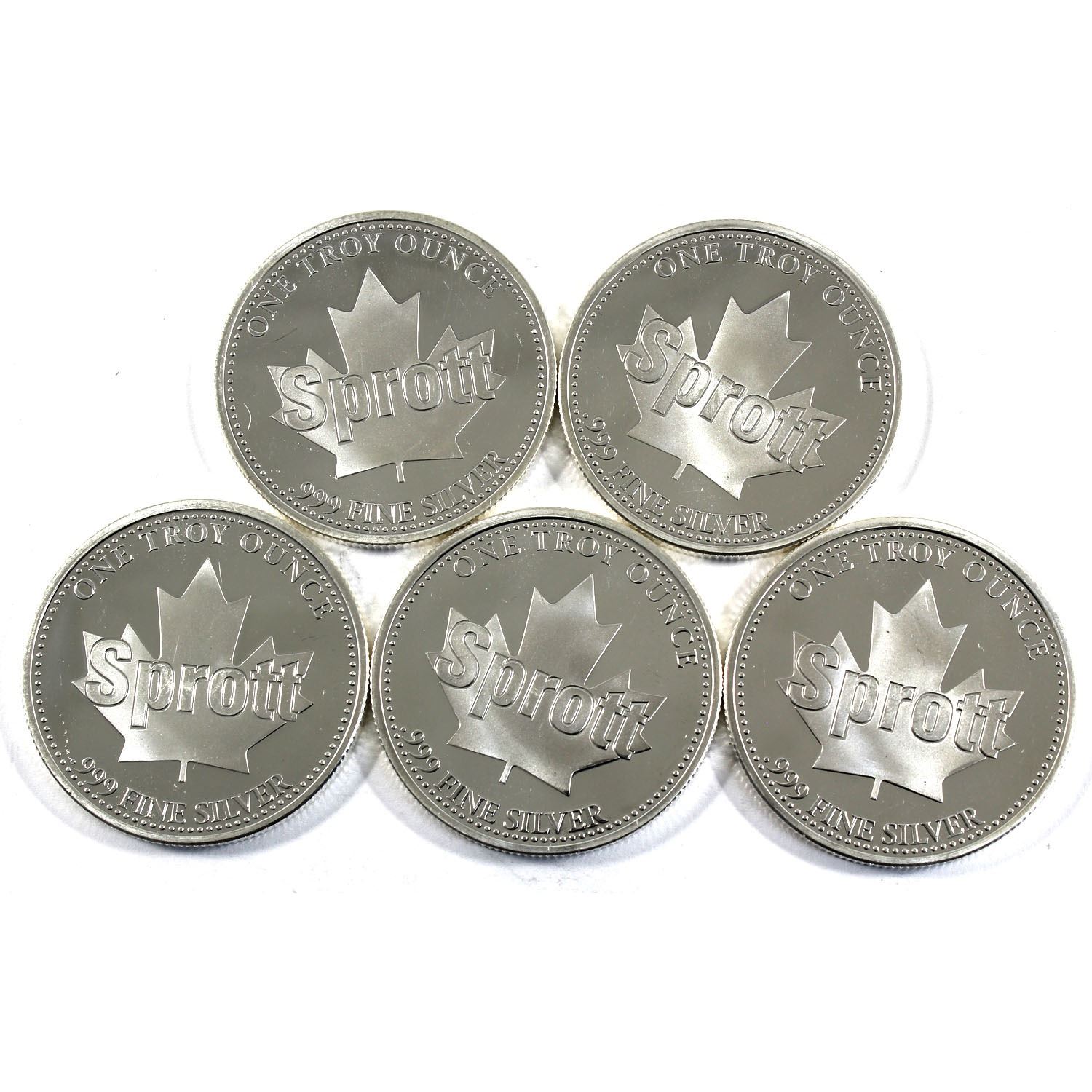 1oz Sprott Canada .999 Fine Silver Rounds (lightly scratched). 5pcs (TAX Exempt)