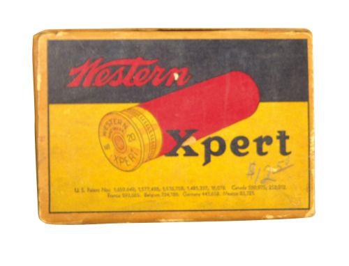 One Piece Western Shot Shell Box for 20 gauge Expert shells, empty. Very good condition, complete.