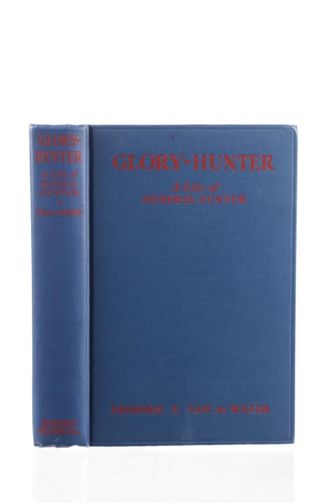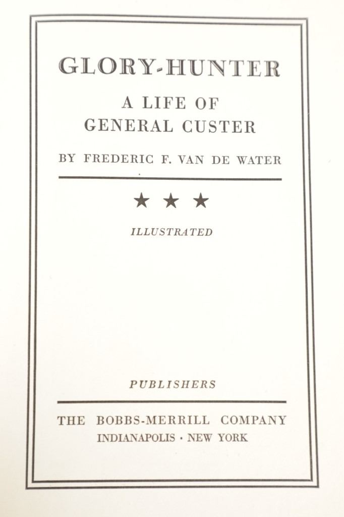 For your consideration is this 1934 1st edition of "Glory Hunter - A Life of General Custer" by Frederic F. Van De Water, published by The Bobbs-Merrill Company and copy-righted by the author. The book follows the short life of General George Custer from the US Civil War and detailing the Battle of the Little Bighorn, how the Native Americans were treated during the time of General Custer. "Glory Hunter" is an excellent addition to the history of the Civil War and focuses on the little known cavalry battle at Trevelian Station in Virgina. it gives a good look into the tactical abilities (or lack thereof) and attitudes of the famously brash boy-general, George A Custer. The battle of Trevelian Station was the largest all-cavalry battle of the Civil War and was part of the Union strategy to capture Richmond. As the title of the book suggests, Custer was always chasing glory, both for himself and the forces under his command. Sometimes he was quite successful. At Trevelian he thought he saw an opportunity to capture a Rebel supply wagon train but overlooked the fact that this venture could put him in a bad fix. His efforts got him surrounded by Rebel forces and almost cooked his goose. Other units came to his rescue and extracted him from the dire predicament he got into. He never acknowledged his lucky salvation by others. A historical marker at the site today has the heading "Custer's First Last Stand". Luther High Spot 2 says "This book was written during the era when debunking was popular and pictures Custer in as unfavorable a light as possible in all situations. Van de Water writes in a bold and vigorous style. The contents so enraged General Hugh S. Johnson sufficiently to draw forth such comments as 'Adverse advocacy,' 'mere muckraking,' 'sounds like the musings of a daisy-crunching doughboy." This is not only a detailed and well-written biography, but it is also a fine psychological study of the controversial Custer. Well worth reading! The blue cloth bound red gilt hardcover is in amazingly well preserved condition, very slight scuffing to cover edges. Measures 6.25"W x 9.25"L x 1.5"D, weight is 1lb, 10oz.