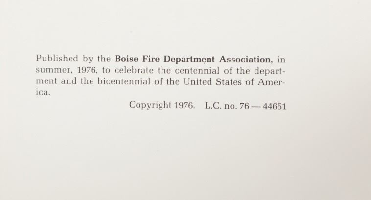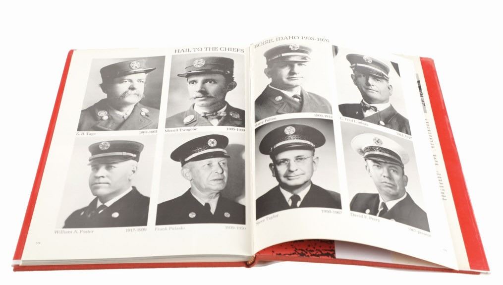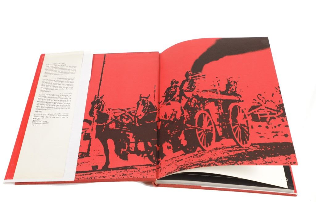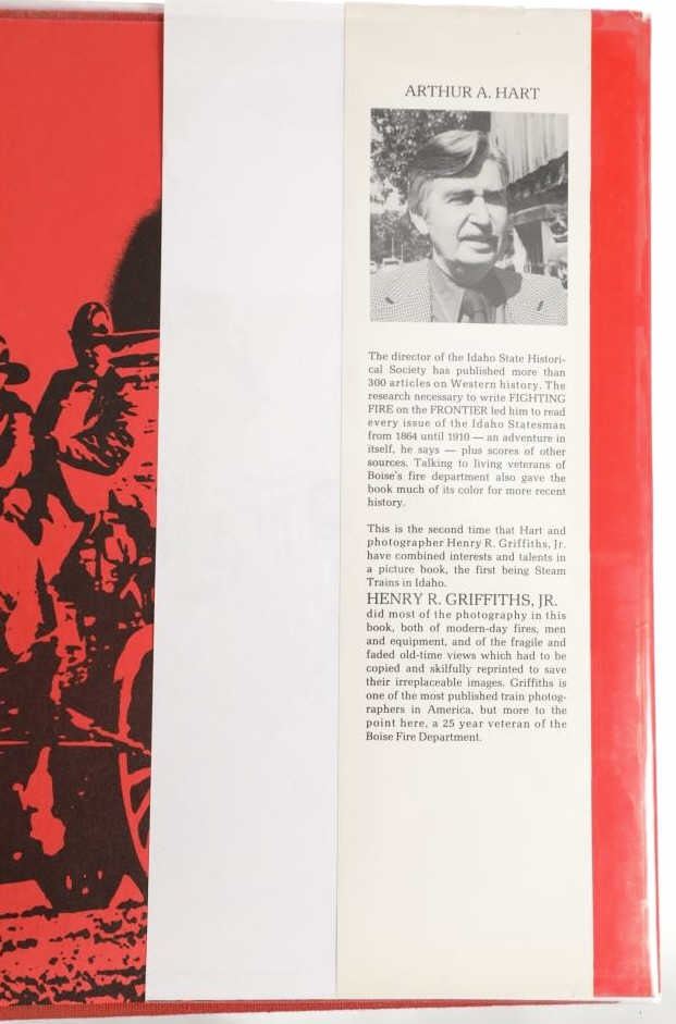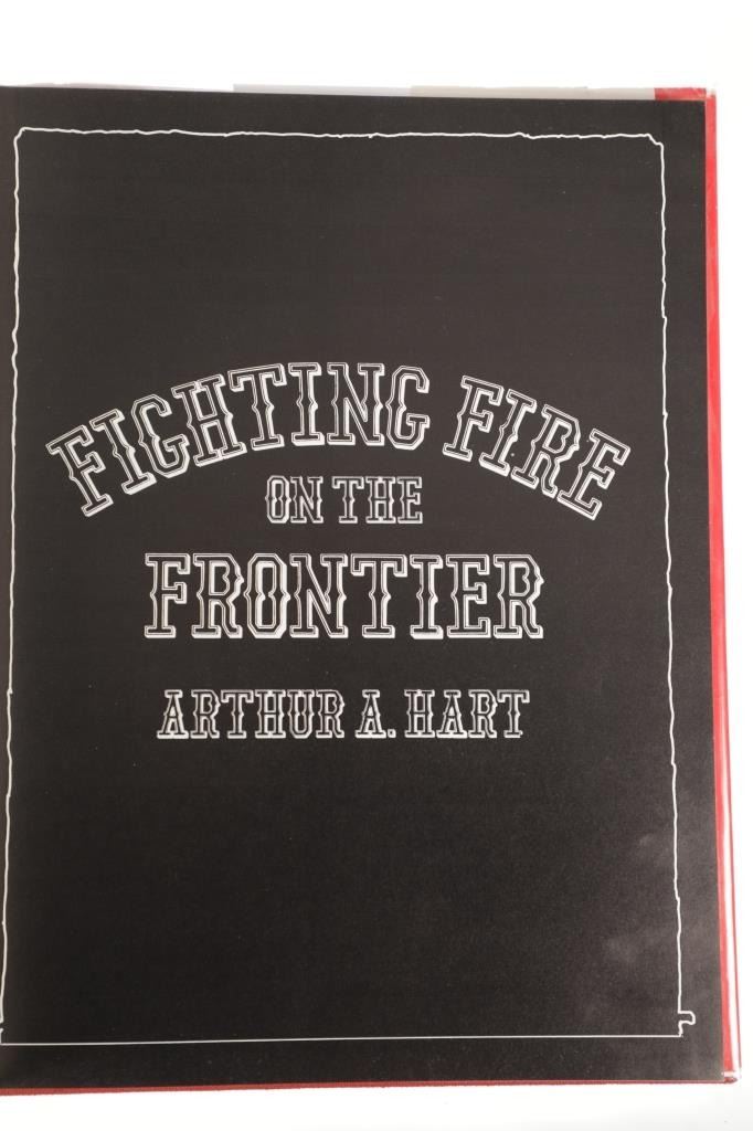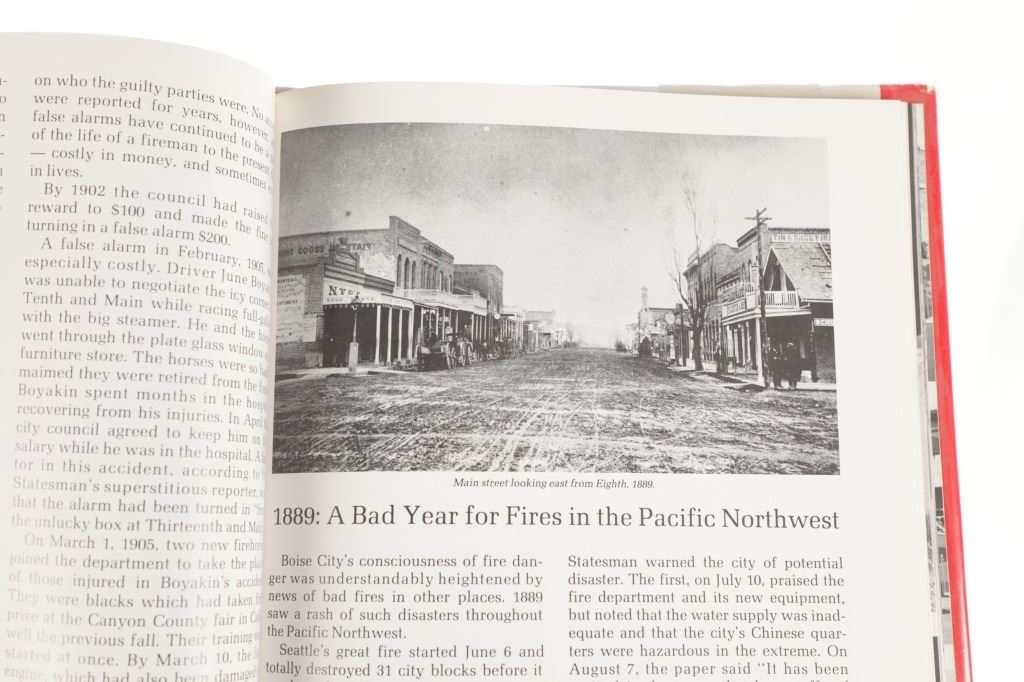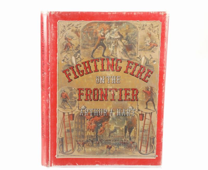 Featured in this lot is a 1976 first edition of, "Fighting Fire On The Frontier" by Arthur A. Hart. This book is the centennial history of the Boise City, Idaho fire department. Fire engines, chemical carts, the fire horses, and the arrival of mechanization are all part of the story, told in detail in this book. The book features a dust jacket with a big title in red with the author's name in white below that. The original cover is wrapped in red cloth and features the title and author's name outlined in black. Overall the book is in good condition with no obvious damage. The interior pages are in good condition. The book measures 12 1/4" L x 9 1/4" W x 7/8" D.