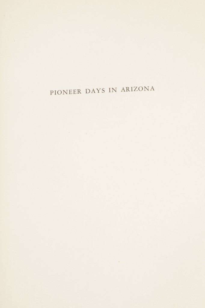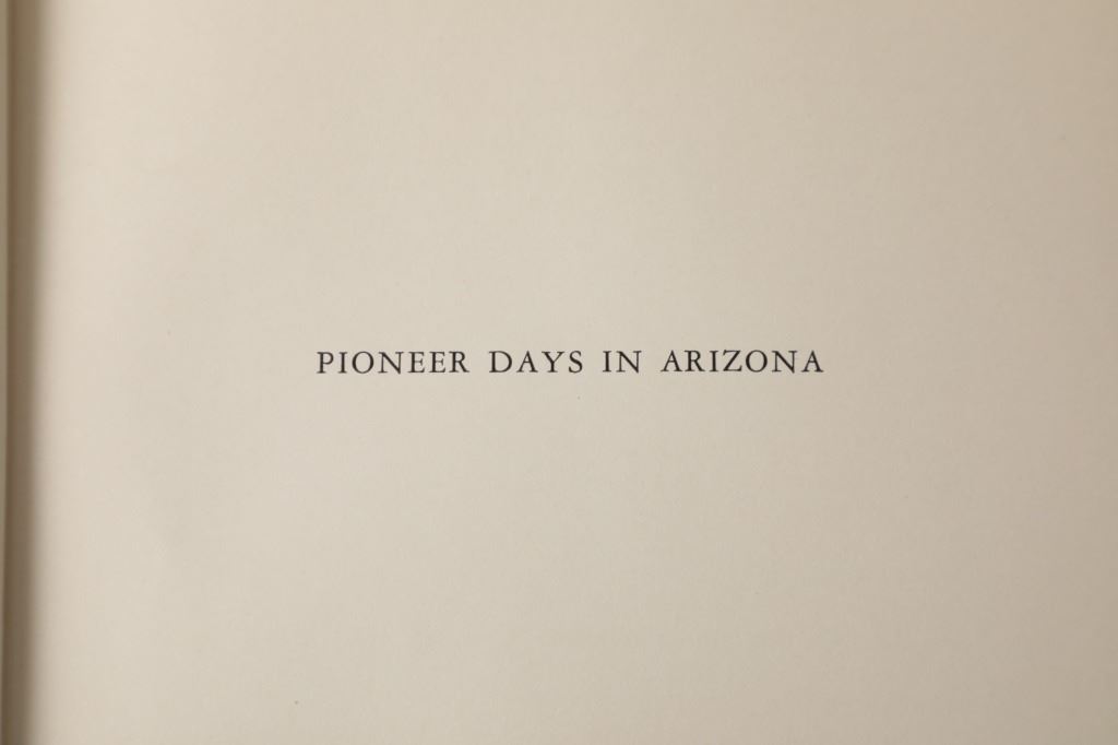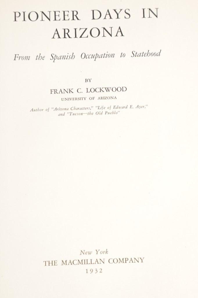 Featured in this lot is this first edition "Pioneer Days in Arizona" by Frank C. Lockwood circa 1932 and was housed in the Tombstone Western Heritage Museum; Provenance: From the Tombstone Western Heritage Museum in Tombstone, Arizona. Pioneer Days in Arizona by Frank C. Lockwood, first published in 1932, is a historical account that captures the rugged spirit and challenges of early settlement in Arizona Territory. Drawing on firsthand stories, records, and regional lore, Lockwood recounts the experiences of explorers, missionaries, soldiers, and settlers who shaped the state’s frontier history. The book covers conflicts with Native tribes, the hardships of desert life, and the perseverance of pioneers as they built communities in an unforgiving land. Widely regarded as a classic of Southwestern history, it preserves valuable insights into Arizona’s formative years. The condition of this book is well preserved with some very slight wear to the cover of the book and browning to the pages consistent with age but otherwise shows a well preserved condition. The measurements of this book is 9 1/2" x 6 3/4". The collective weight of this book is 2lb 4oz.