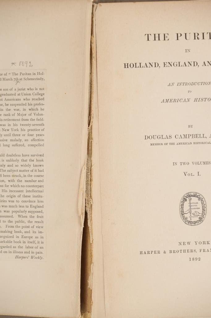 Featured in this lot is this 1st edition The Puritan Vol. I and II by Douglas Campbell. There are two books in this collection. The books are a historical non fiction about the Puritan movement in Holland, England, and America that highlights their accomplishments and spread of their movement. The condition of this pair of books is preserved with some wear to the spine and browning to the pages of the book with some wear to the corners of the covers of the books. The measurements of this pair of books is 9" x 6". The collective weight of this pair of books is 5lb.