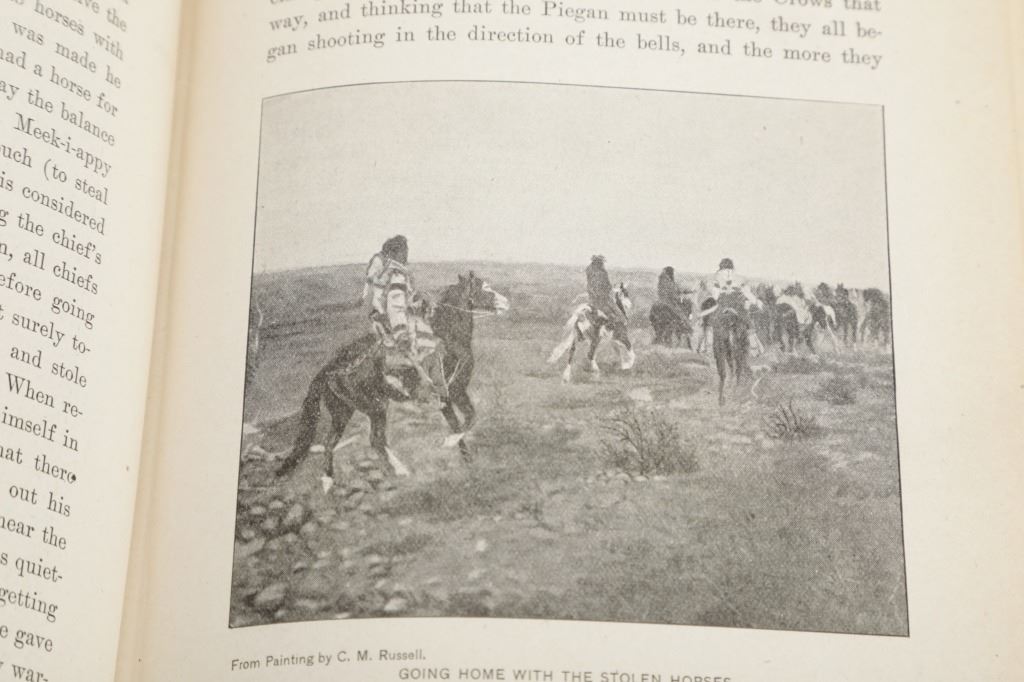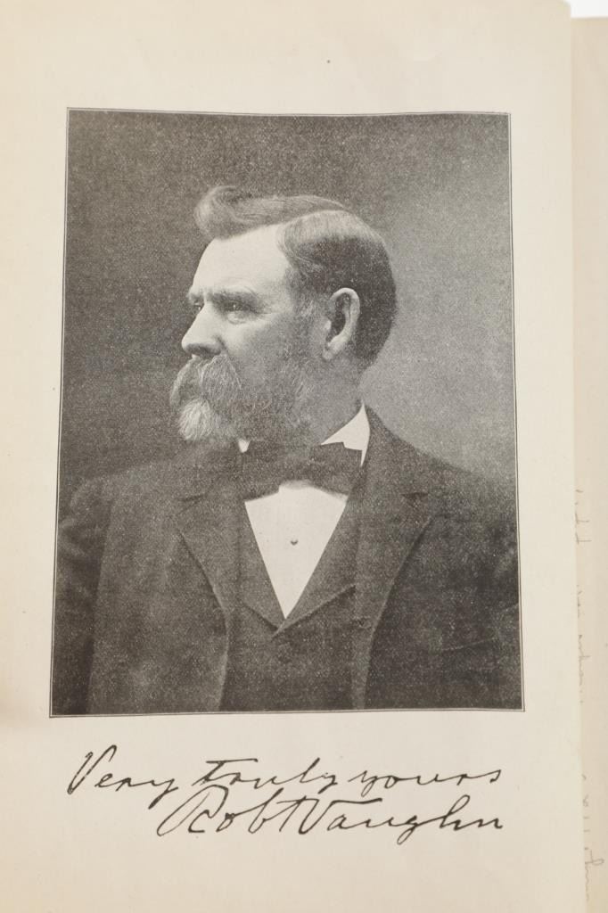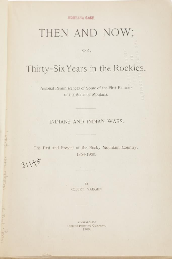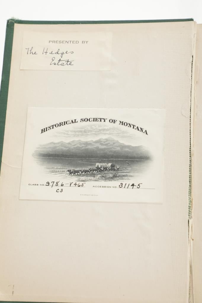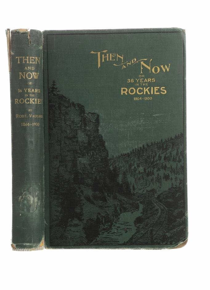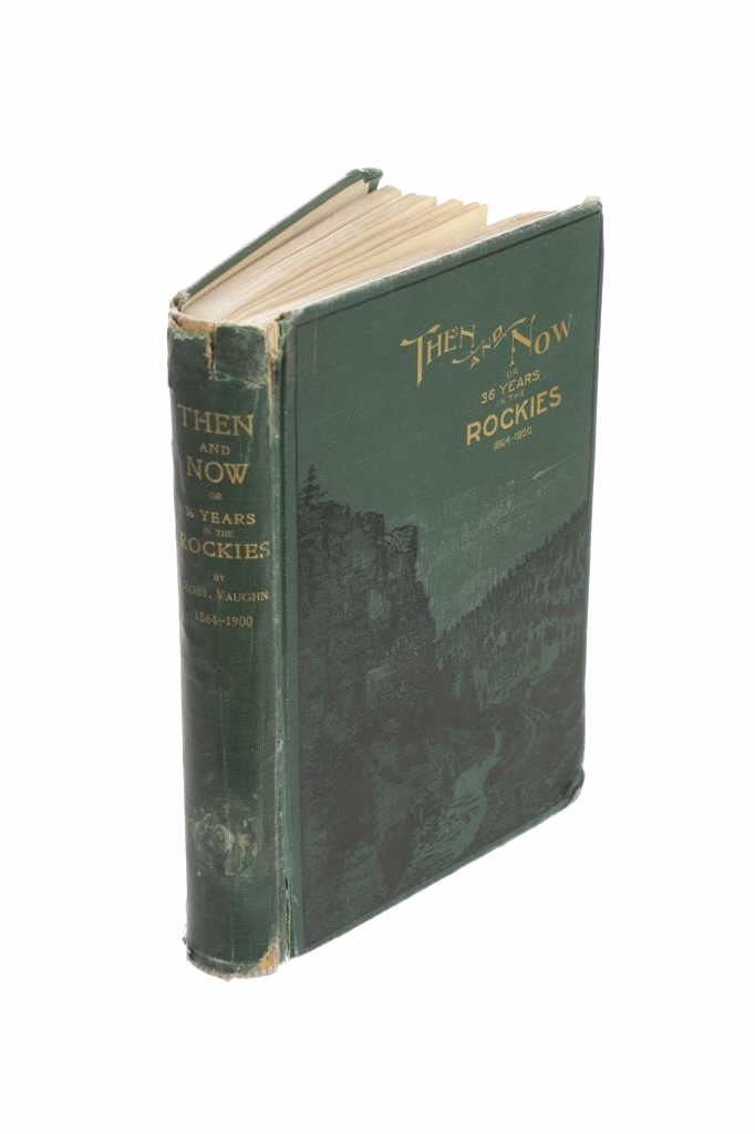 Featured in this lot is this 1900 first edition copy of Then and Now or 36 Years in the Rockies 1864-1900 by Robert Vaughn. The book features a green cloth wrapped cover with gilt lettering of the title. The book includes information including the personal reminiscences of some of the first pioneers of the State of Montana, Indians and Indian wars, and the par and present of the Rocky Mountain Country 1864-1900. The book includes a printed signature underneath the picture of Robert Vaughn. The condition of this book is fair to good with some wear to the spine and inside cover and the bottom of the outside cover, and shows browning to the pages consistent with age but otherwise in fair to good overall condition. The measurements of this book are 8 3/4" x 6 3/8" x 1 1/8".