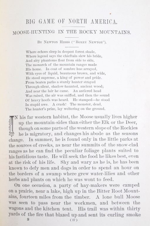 For your consideration is this 1890 first edition of The Big Game of North America compiled by George Oliver Shields from. This book compiles the habits, haunts and characteristics the how, when and where to hunt the big game of North America. Published by Rand, Mcnally in 1890, this book still has the original pictorial red cloth cover with gilt. This is a first edition of big game hunting lore, with 27 full page illustrations and numerous in text vignettes. This book includes Judge John Dean Caton's treatise " The Ethics of the Field Sports." This book is in good condition with light wear on the cover boards and, bindings are tight with strong hinges. The text is bright with minimal to no foxing. The measurements of this book are 6 3/4" x 9 1/2".