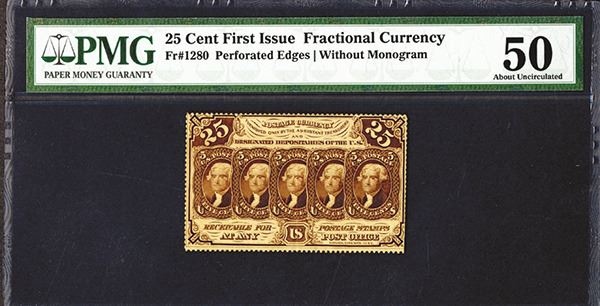 Fractional Currency. Perforated edges without monogram. Fr. 1280. PMG About Uncirculated 50.