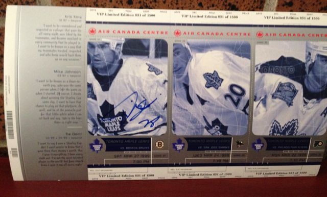 1st Season at A.C.C VIP Ticket Hand Signed by Tie Domi