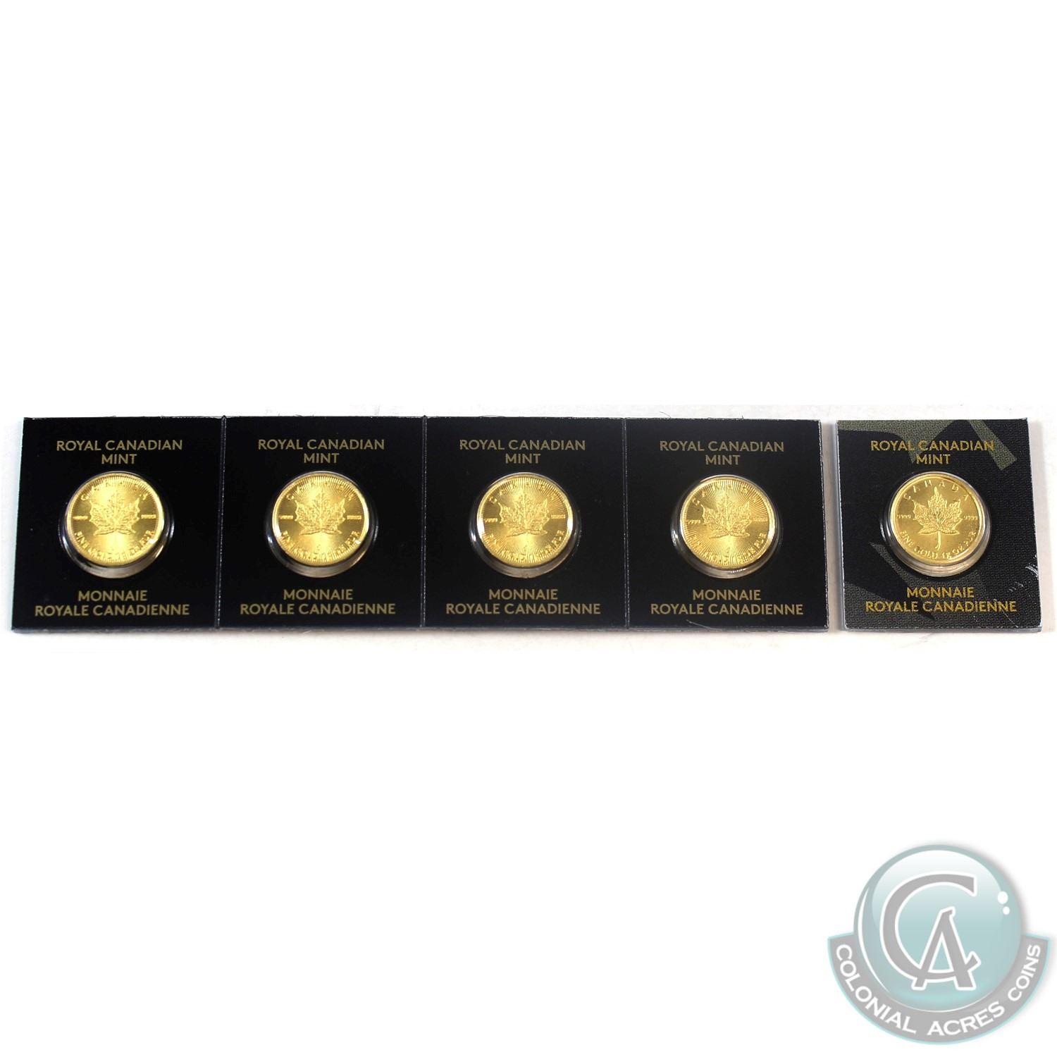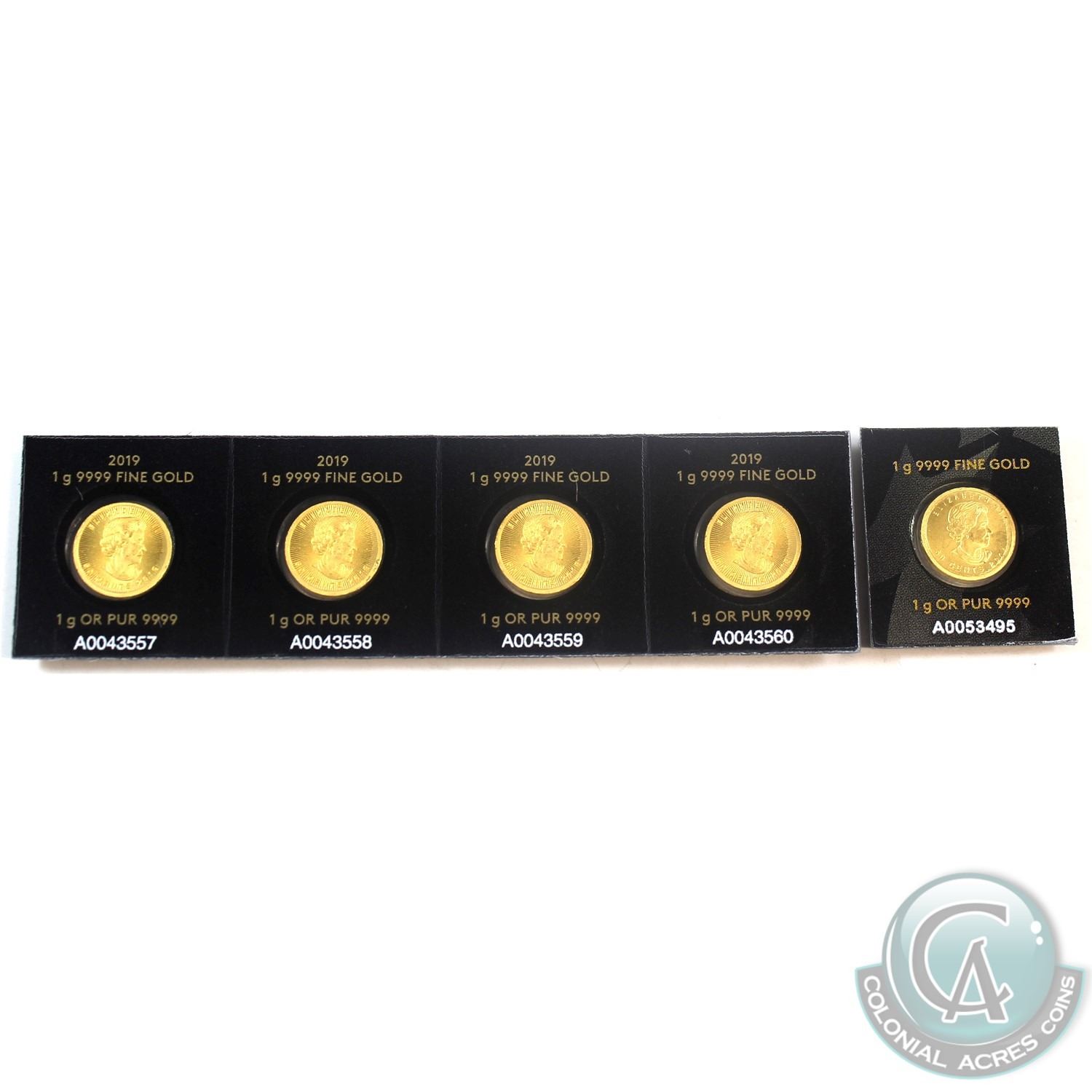1x 2014 & 4x 2019 Canada 1 Gram .9999 Fine Gold RCM Maples in Hard Plastic Holders. 5pcs (TAX Exempt)