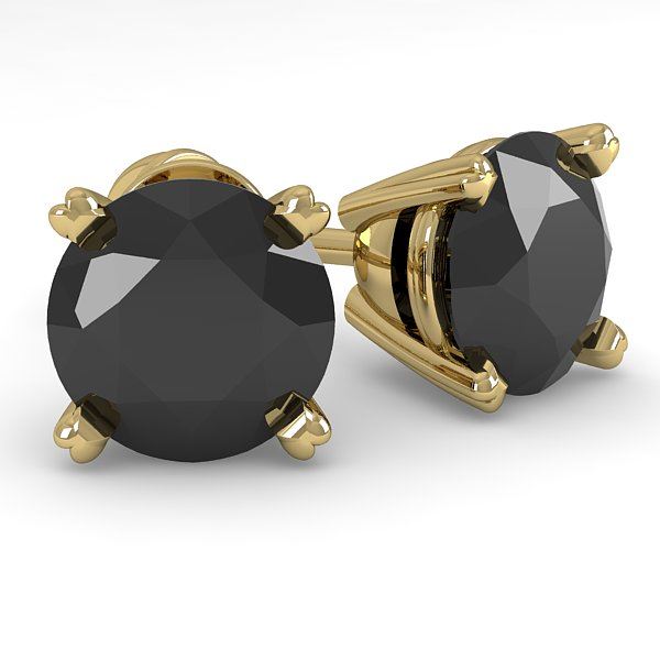 REF-58T4M -38375 ---- 2.0 CTW Black Diamond Stud Designer Earrings 14K Yellow Gold ---- Luxury Designer Brand Earring Appraised at $3,550 Certificate Number US38375 14k Yellow gold, Earring Size is Larger, Earring measuring approx. Uniform, weighing in total approx. 2.2 grams. Made in the USA and is stamped 14k, Main stone 2 carat total weight containing 2 pieces of Black Opaque color with VS quality Round shape cut Diamond , Stone #2 carat total weight containing pieces of color with quality shape cut