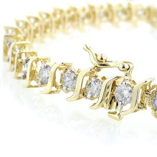 REF-121W6F -13226 ---- 2.0 CTW Certified VS/SI Diamond Bracelet 10K Yellow Gold ---- Luxury Designer Brand Bracelet Appraised at $5,350 Certificate Number US13226 10k Yellow gold, Bracelet Size is 7 Inches, Bracelet measuring approx. 7" x 5mm, weighing in total approx. 8 grams. Made in the USA and is stamped 10k, Main stone 2 carat total weight containing 49 pieces of H-J color with VS/SI quality Round shape cut Diamond , Stone #2 carat total weight containing pieces of color with quality shape cut