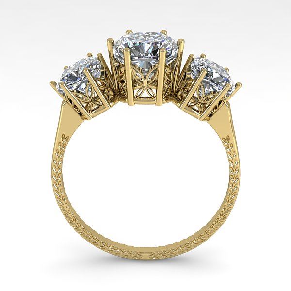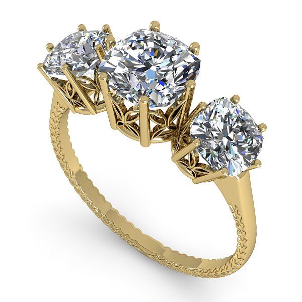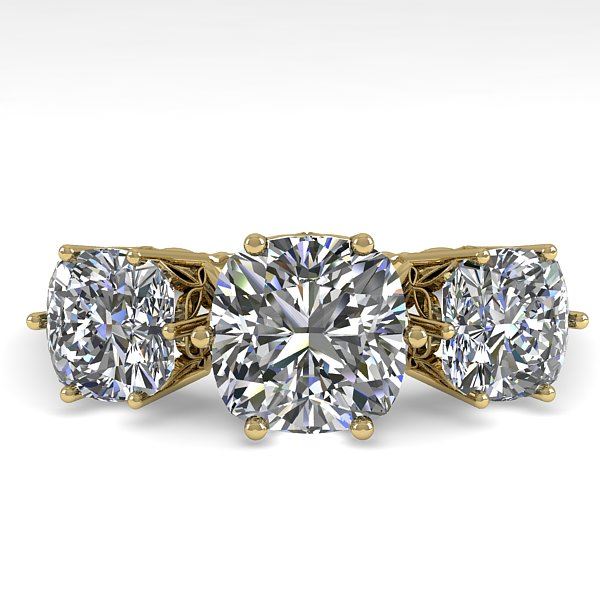REF-414W2F -35920 ---- 2.0 CTW Past Present Future Certified VS/SI Cushion Diamond Ring 18K Yellow Gold ---- Luxury Designer Brand Ring Appraised at $22,100 Certificate Number US35920 18k Yellow gold, Ring Size is 7, Ring measuring approx. Uniform, weighing in total approx. 7.6 grams. Made in the USA and is stamped 18k, Main stone 1 carat total weight containing 1 pieces of H-J color with VS/SI quality Cushion shape cut Diamond , Stone #2 1 carat total weight containing 2 pieces of H-I color with VS/SI quality Cushion shape cut Diamond