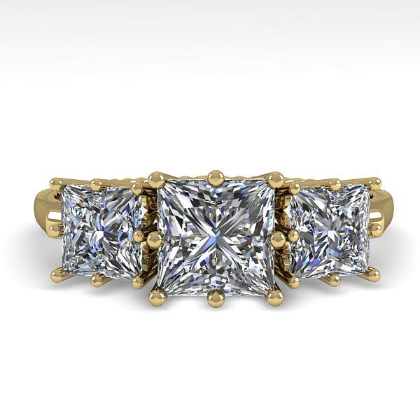 REF-414X2T -35917 ---- 2.0 CTW Past Present Future VS/SI Princess Diamond Ring 18K Yellow Gold ---- Luxury Designer Brand Ring Appraised at $24,850 Certificate Number US35917 18k Yellow gold, Ring Size is 7, Ring measuring approx. Uniform, weighing in total approx. 7.6 grams. Made in the USA and is stamped 18k, Main stone 1 carat total weight containing 1 pieces of H-J color with VS/SI quality Princess shape cut Diamond , Stone #2 1 carat total weight containing 2 pieces of H-I color with VS/SI quality Princess shape cut Diamond