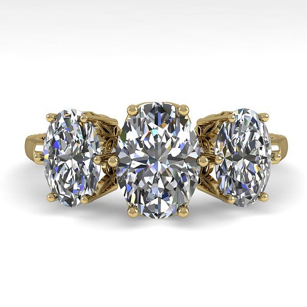 2.0 CTW Solitaire Past Present Future VS/SI Oval Diamond Ring 18K Yellow Gold ---- Luxury Designer Brand Ring Appraised Retail Price at $22,100 ---- SKU Number US35914 18k Yellow gold Ring Size is 7, Ring measuring approx. Uniform, weighing in total approx. 7.6 grams. Made in the USA and is stamped 18k, Main stone 1.00 carat total weight containing 1 pieces of H-J color with VS/SI quality Oval shape cut Diamond , Stone #2 1 carat total weight containing 2 pieces of H-I color with VS/SI quality Oval shape cut
