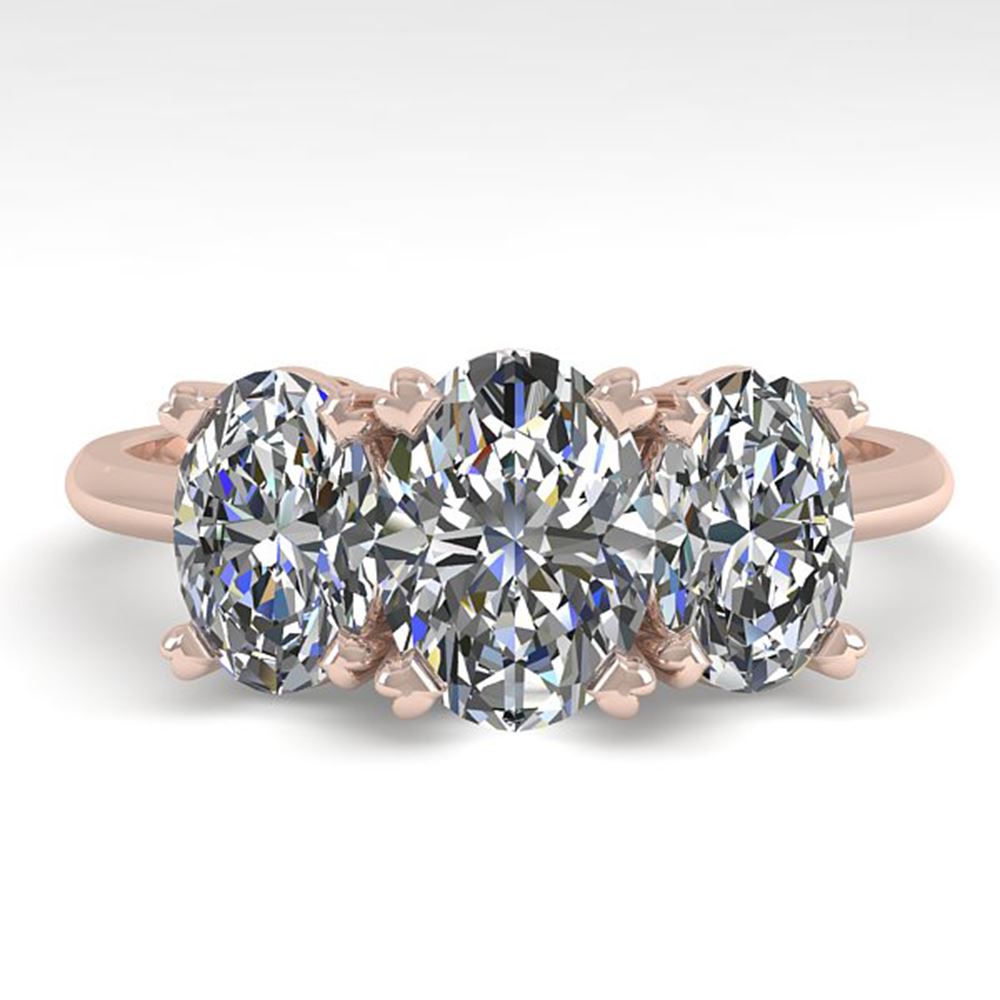 REF-395R8K - SKU: 38496 ---- 2.0 ctw Oval Cut VS/SI Diamond 3 Stone Designer Ring 14k Rose Gold