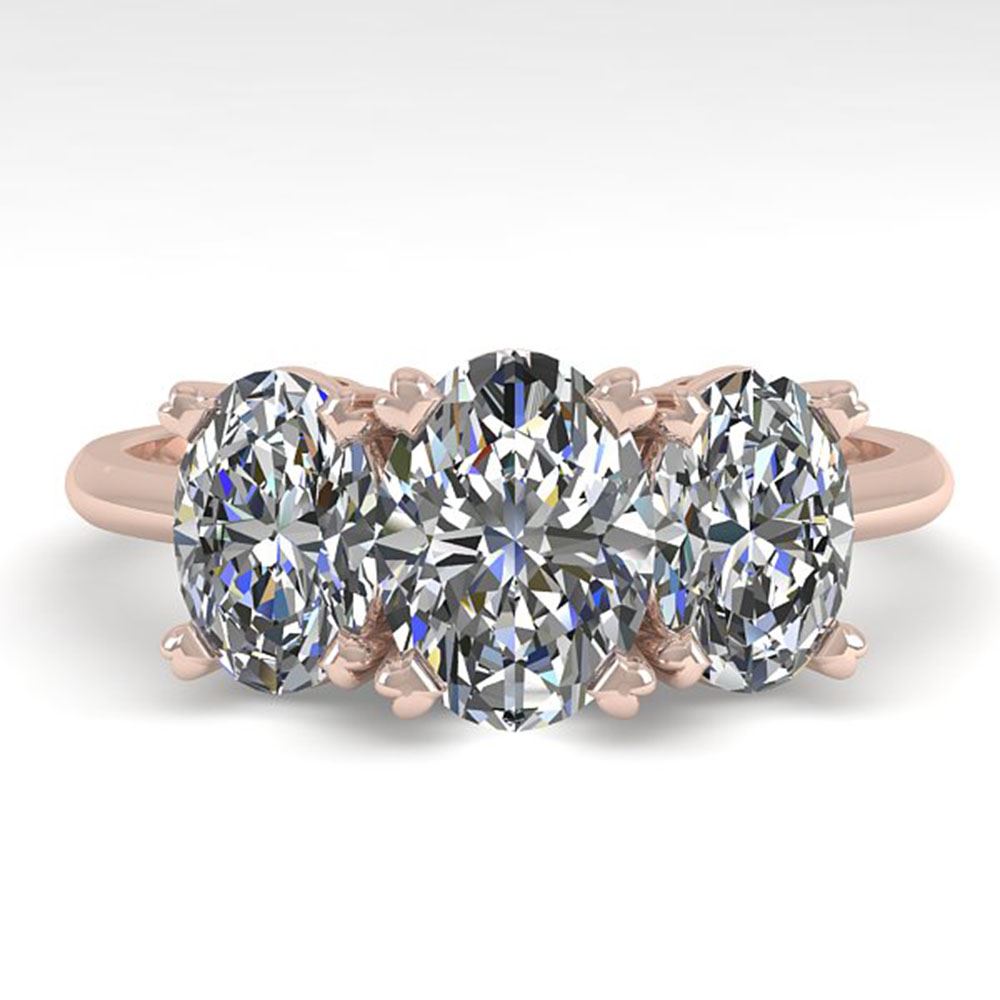 SKU: 32468 ---- 2.0 ctw Oval Cut VS/SI Diamond 3 Stone Designer Ring 18k Rose Gold