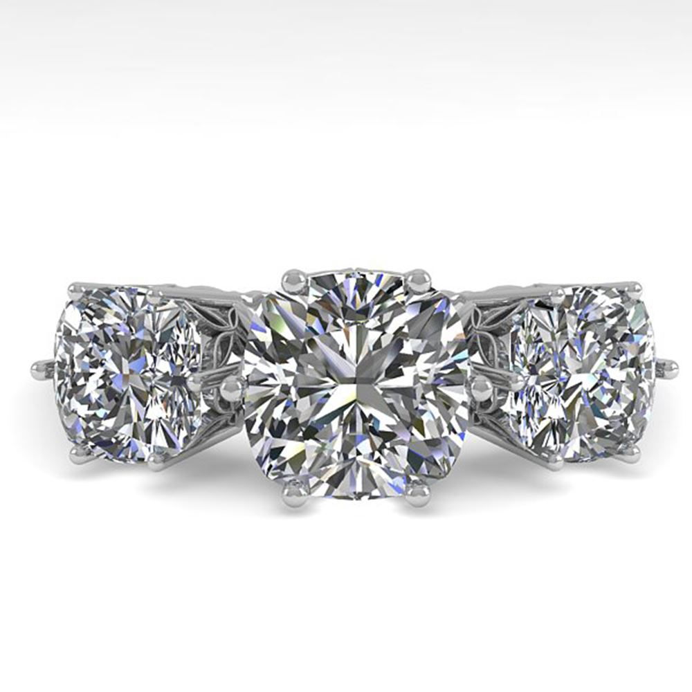 REF-435M2G - SKU: 35919 ---- 2.0 ctw Past Present Future VS/SI Cushion Diamond Ring 18k White Gold