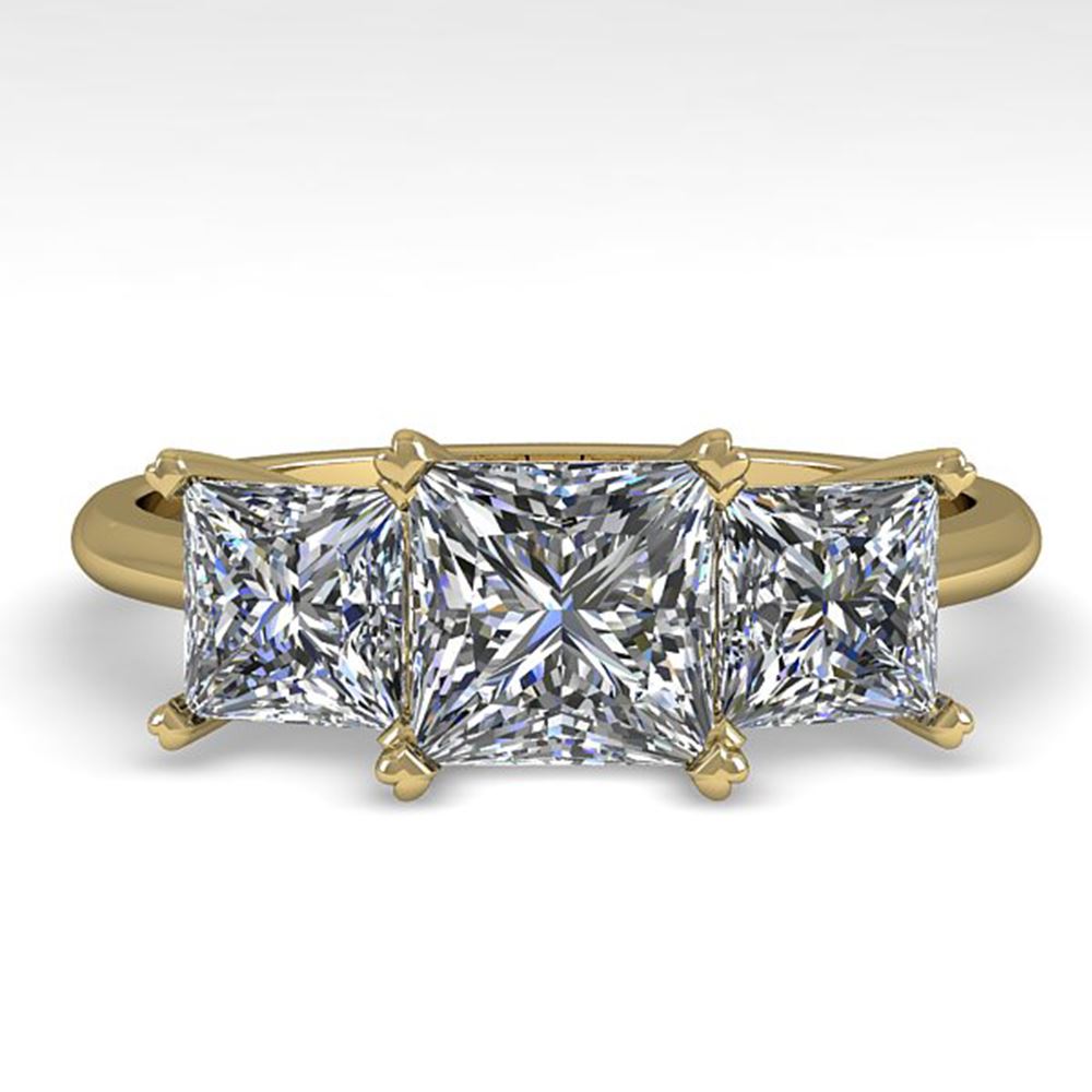 REF-395H8R - SKU: 38501 ---- 2.0 ctw Princess VS/SI Diamond 3 Stone Designer Ring 14k Yellow Gold