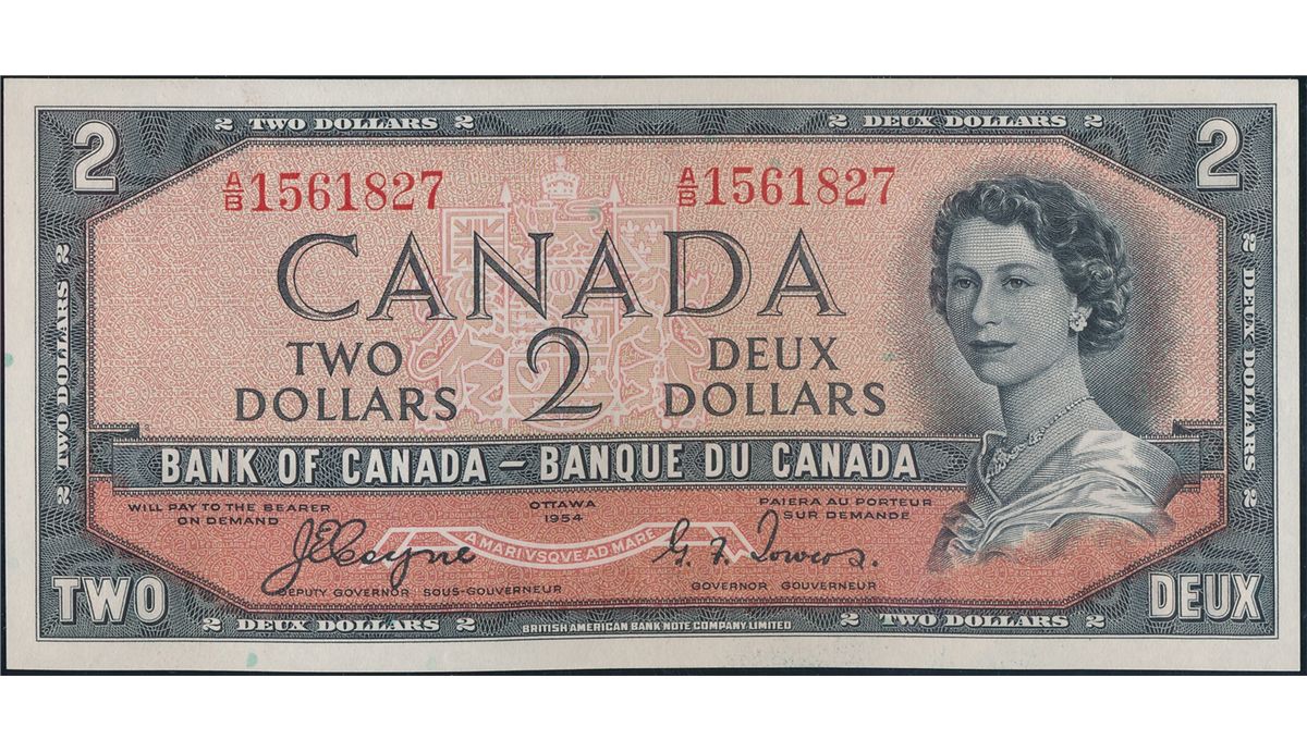 $2.00. 1954 Issue. BC-30a. No. A/B1561827. Coyne-Towers. 'Devil's Face'. Unc.