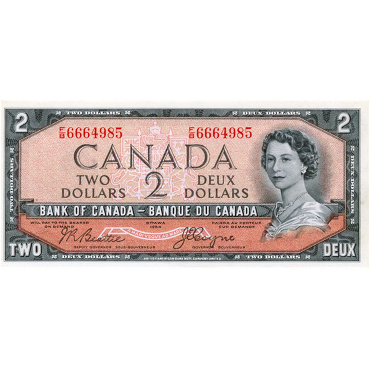 $2.00. 1954 Issue. BC-30b. Beattie-Coyne. ‘Devil’s Face’. No. F/B6664985. PCGS graded Choice UNC-64PPQ.