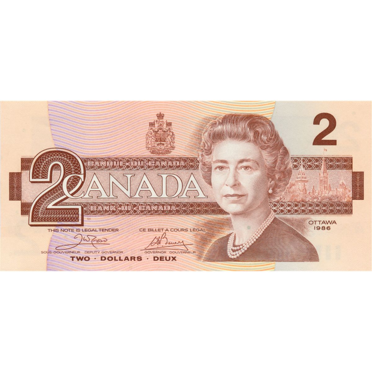 $2.00. 1986 Issue. BC-55a. Crow-Bouey. No. AUH4174003. CCCS graded Gem UNC-66.