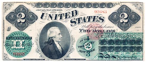 $2.00. August 1, 1862. Fr#41. KL#100. No. 92683. Small red seal. Chittenden-Spinner signatures. GOOD+.
