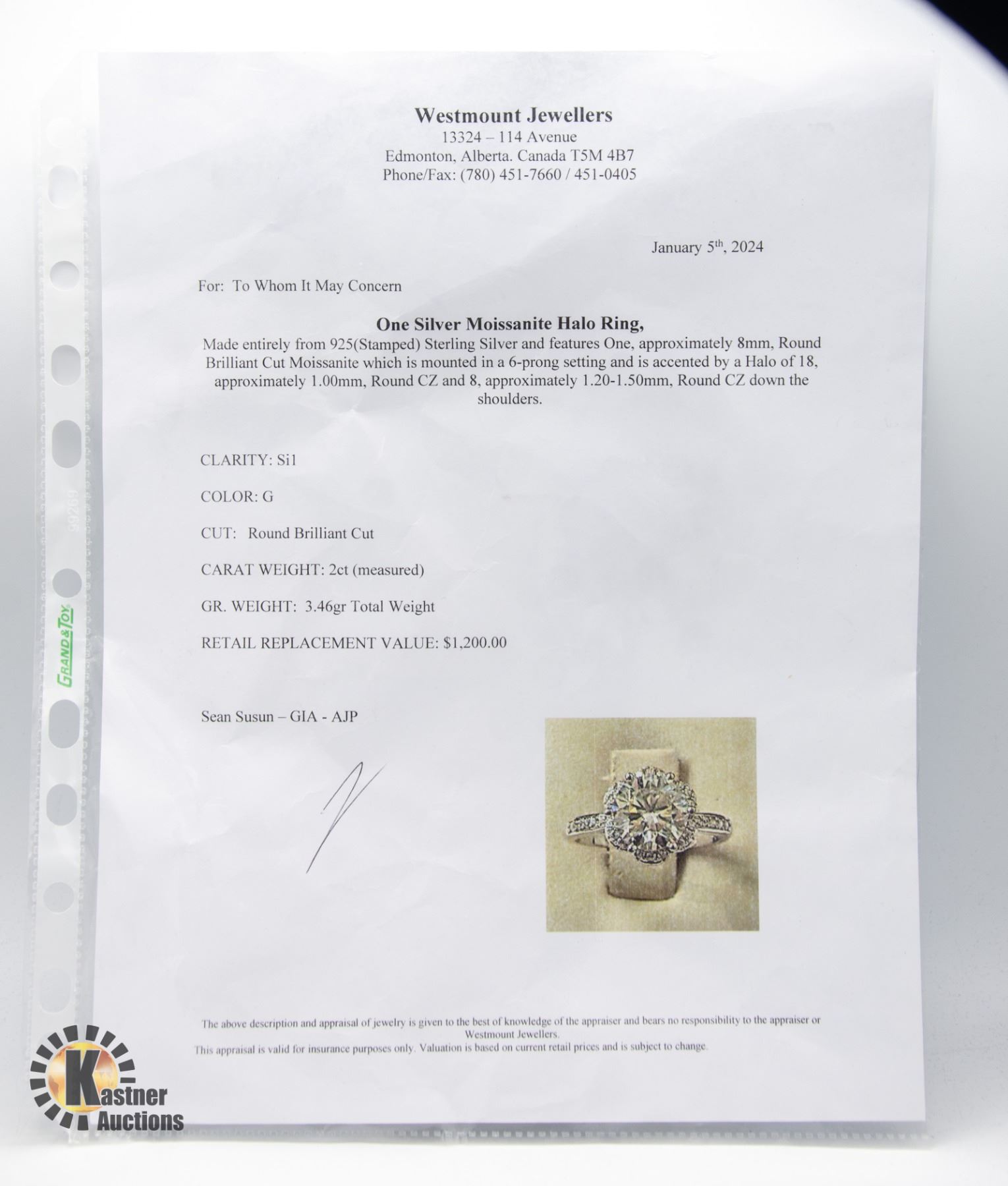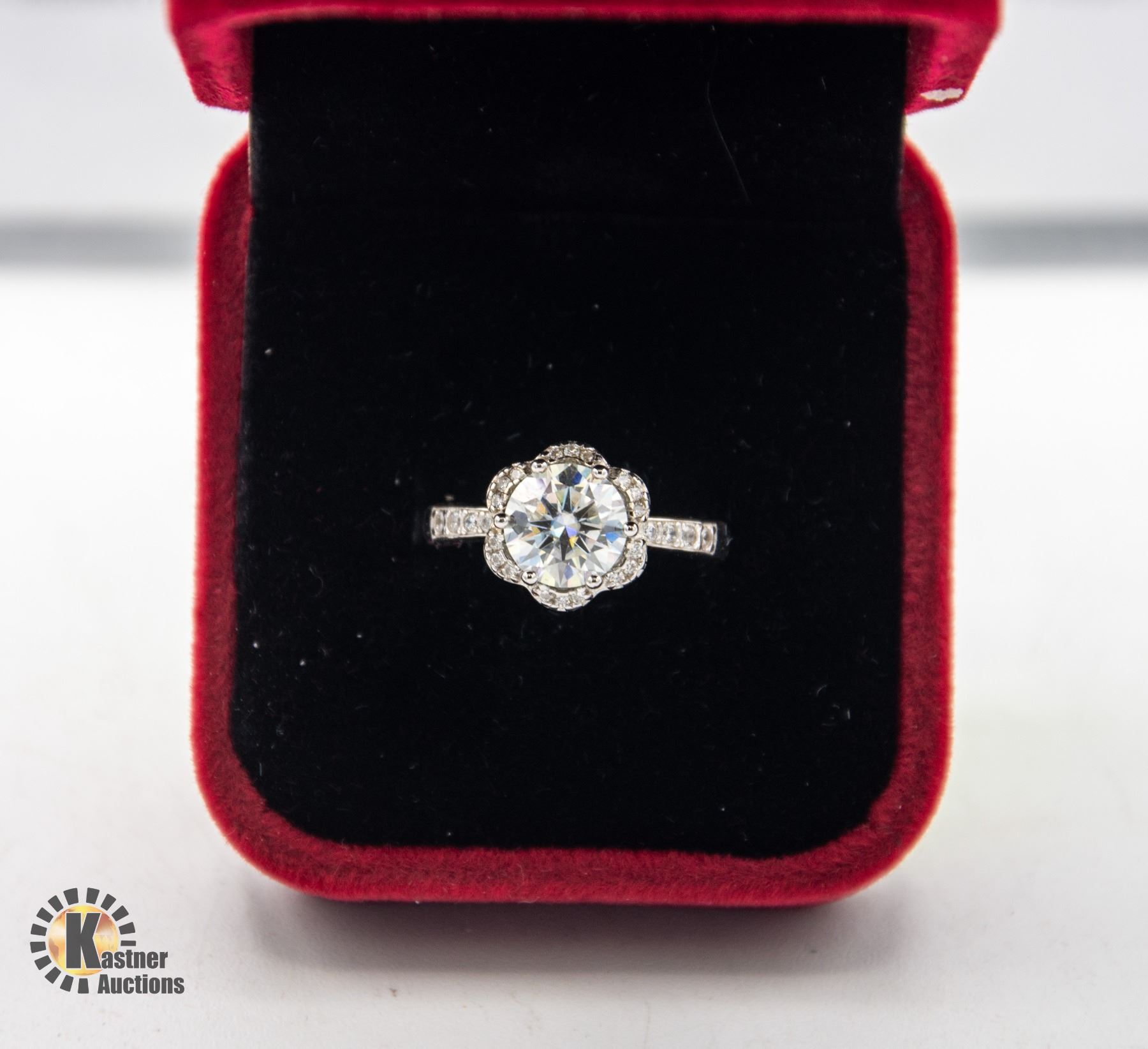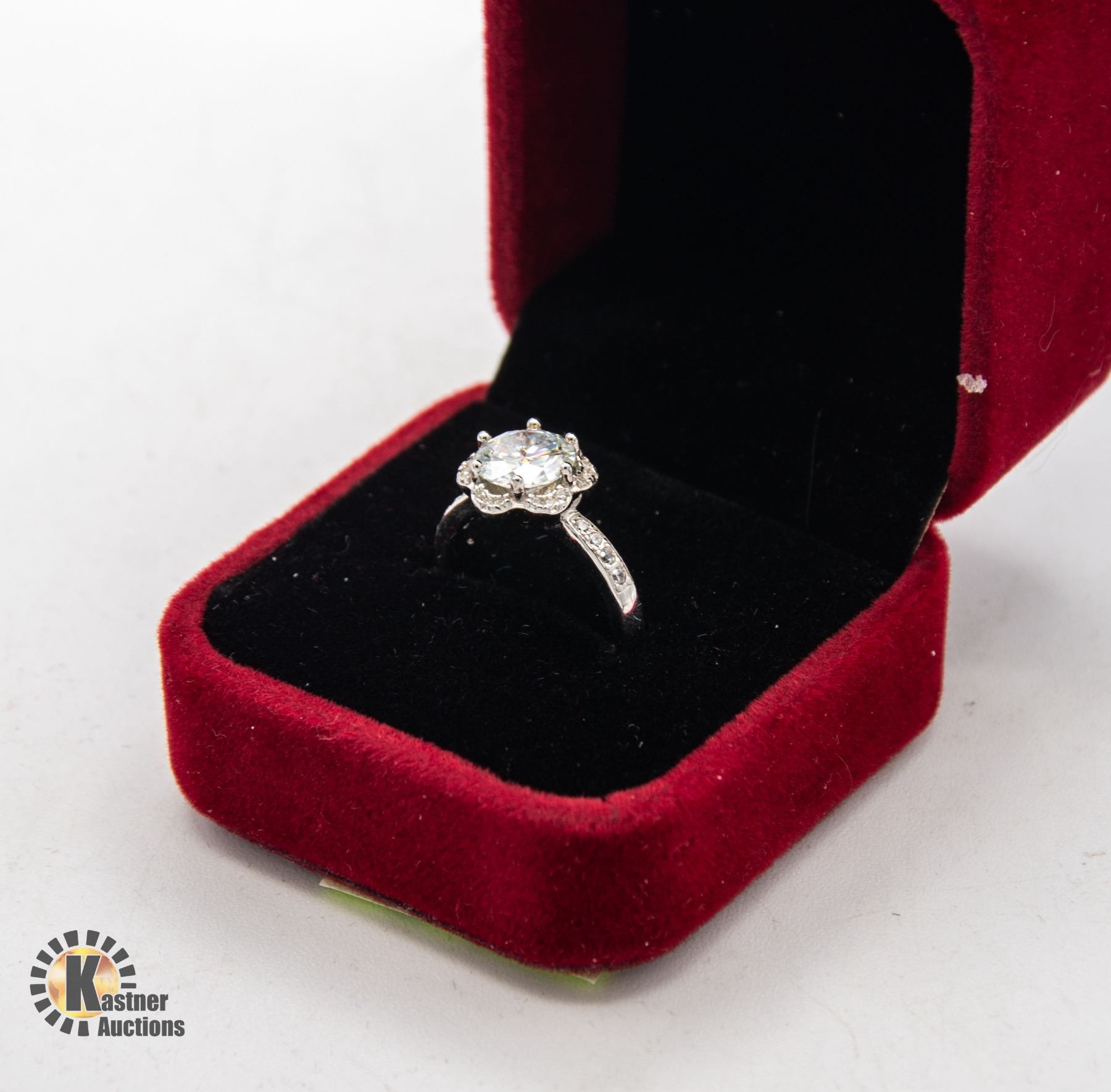 CENTER WITH 3 SET IN 6 LEAVES IN A HALO AROUND THE CENTER WITH 4 SET IN EACH SHOULDER FOR A TOTAL WEIGHT OF 0.15 CT IN CZ RING SIZE ADJUSTABLE RETAIL REPLACEMENT $1,200.00 **ALL ITEMS MUST BE REMOVED BY 5PM SATURDAY, MARCH 23RD 2024. ALL REMAINING ITEMS WILL BE SUBJECT TO A $6.00 PER DAY STORAGE CHARGE. ANY ITEMS REMAINING AFTER MONDAY, APRIL 8TH, 2023 WILL BE CONSIDERED FORFEITED. NO REFUNDS WILL BE ISSUED FOR FORFEITED ITEMS. TO SCHEDULE A PICK UP APPOINTMENT CLICK HERE