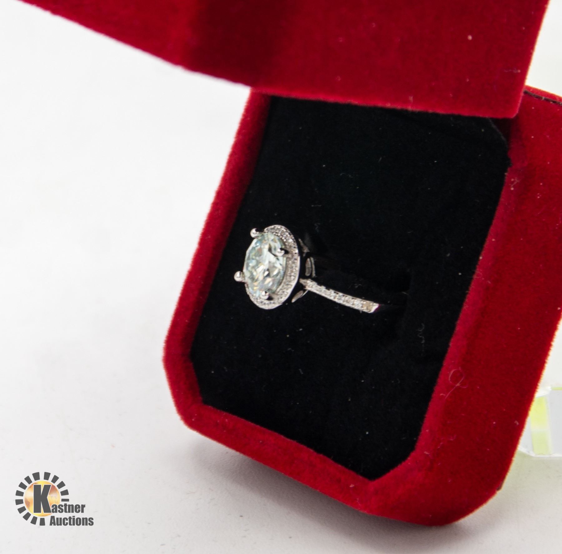 CENTER SURROUNDED BY HALO OF 35 MOISSANITE WITH MORE IN SHANKS RING SIZE IS ADJUSTABLE **ALL ITEMS MUST BE REMOVED BY 5PM SATURDAY, MARCH 2ND 2024. ALL REMAINING ITEMS WILL BE SUBJECT TO A $6.00 PER DAY STORAGE CHARGE. ANY ITEMS REMAINING AFTER MONDAY, MARCH 18TH, 2023 WILL BE CONSIDERED FORFEITED. NO REFUNDS WILL BE ISSUED FOR FORFEITED ITEMS. TO SCHEDULE A PICK UP APPOINTMENT CLICK HERE