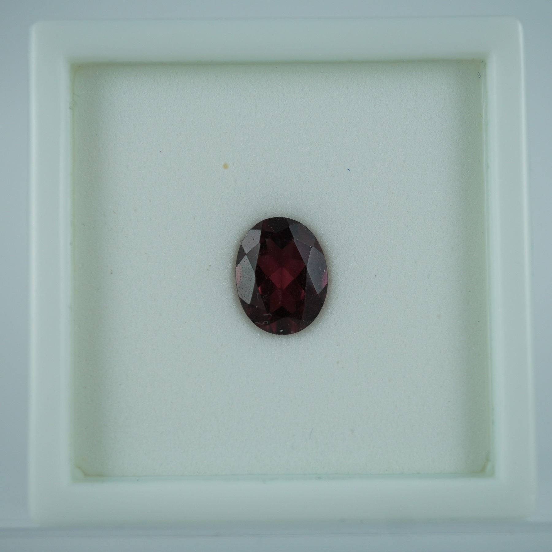 Deep red natural garnet gemstone in a classic oval cut with an approximate weight of 2.00 carats. This richly colored stone displays a strong, saturated hue with internal light reflection. Ideal for a bold jewelry centerpiece or collector addition. Comes with a protective case.