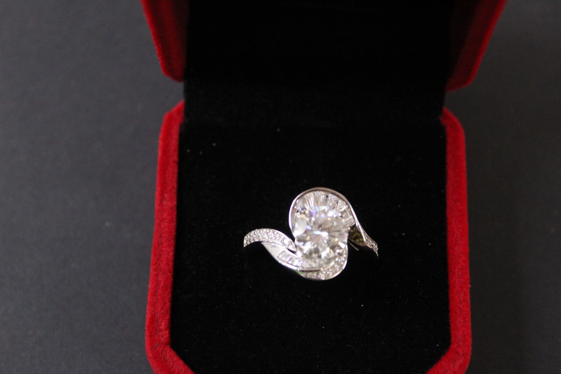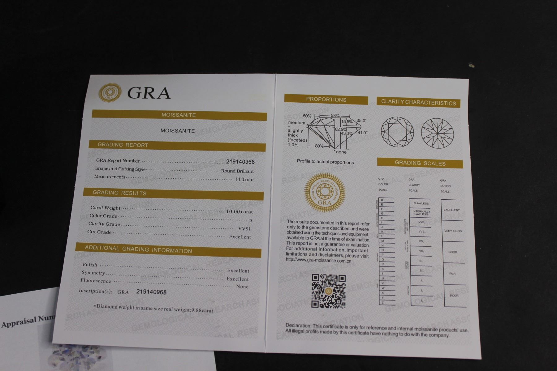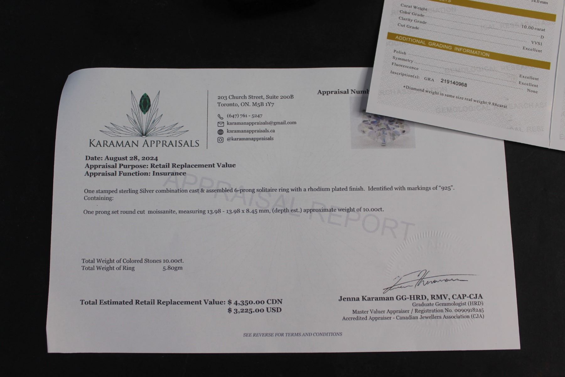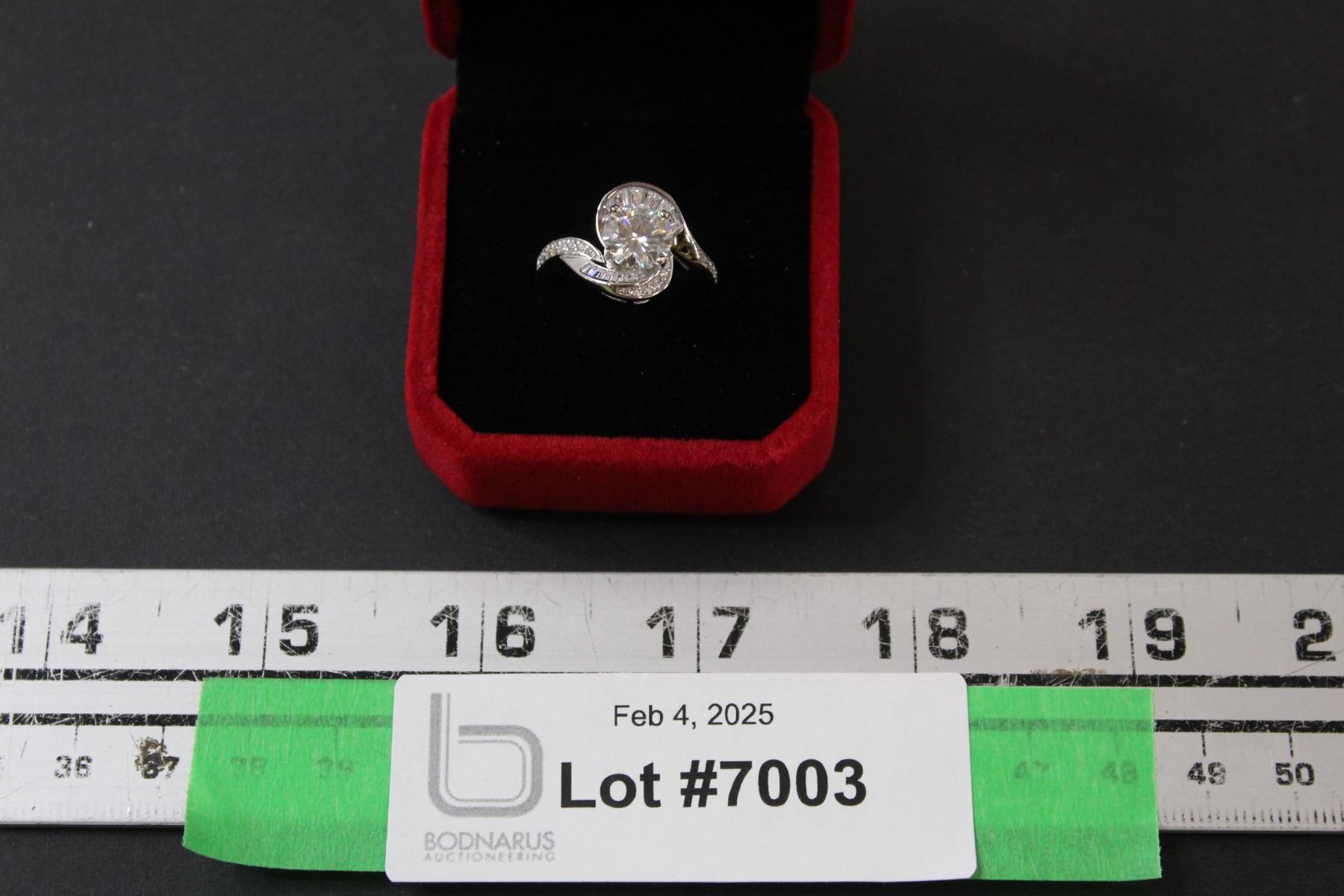 ^ 2.00 CT Round Brilliant Cut Moissanite VVS D Color Set in Center with Channel Set 12 Baguette CZ's Weighing a Total 0.25 CT TW with 22 Round Cut Cubic Zirconia Weighing a Total 0.15 CT Ring - Retail Value $1525