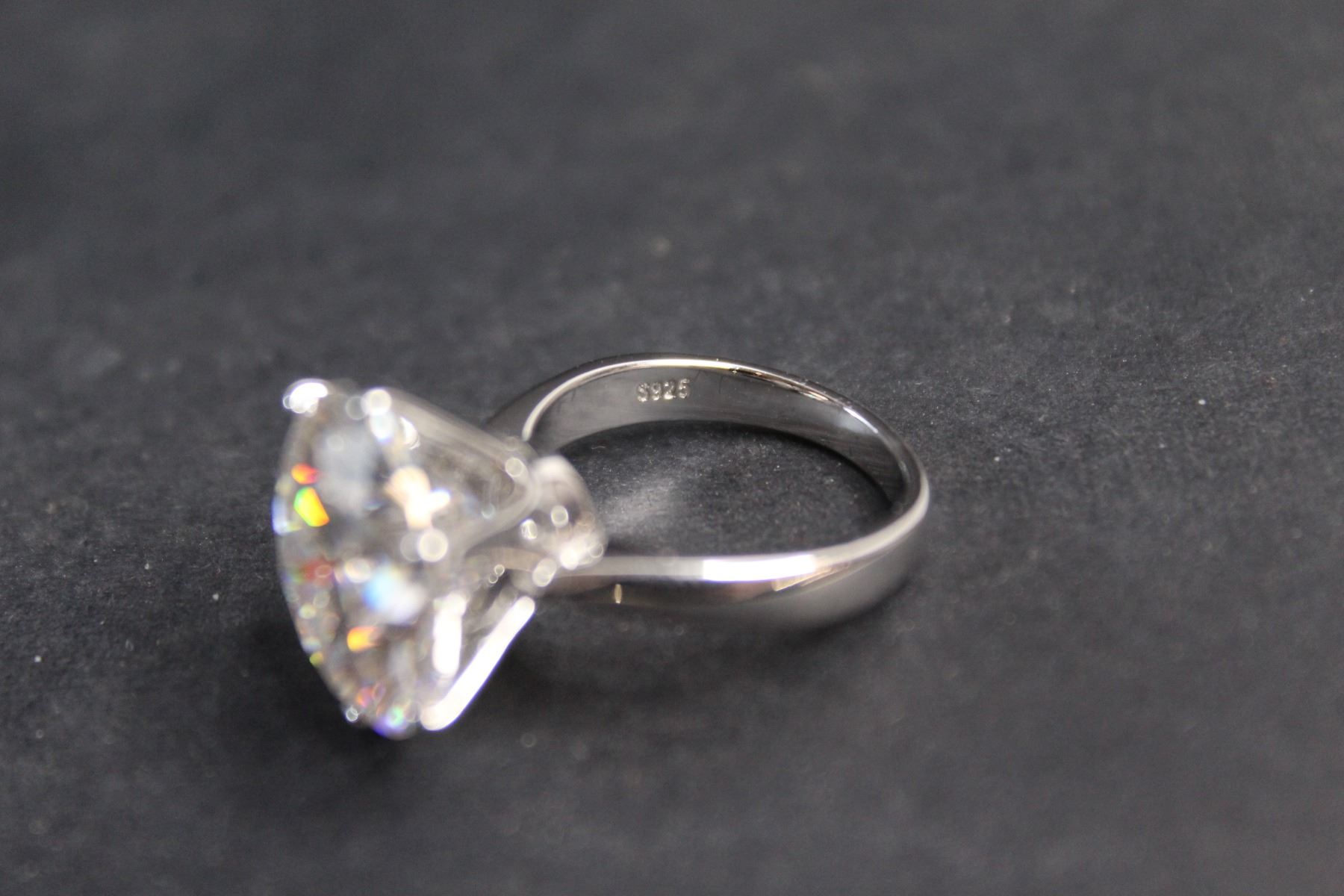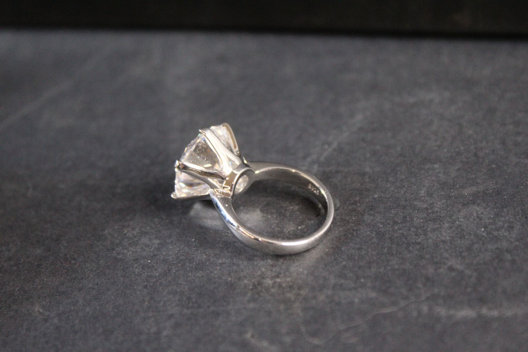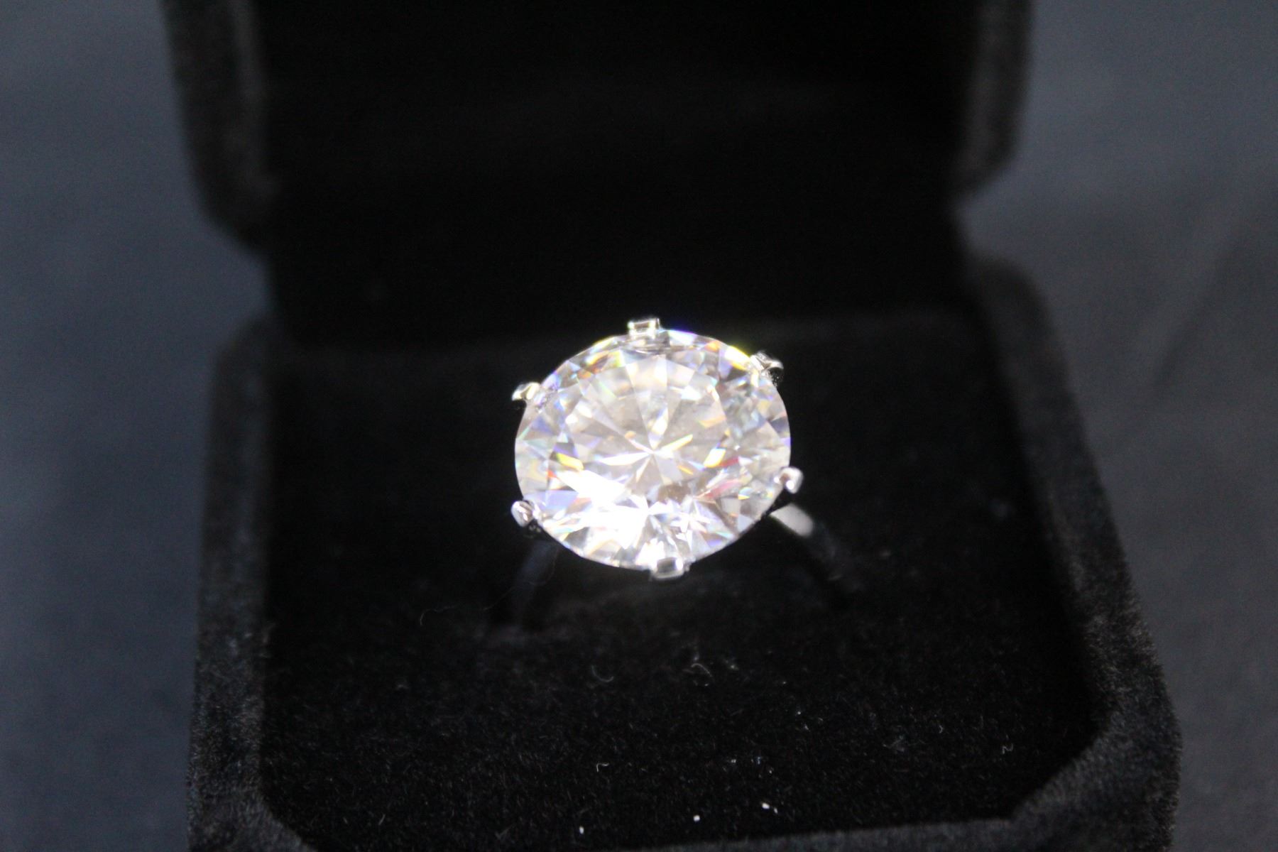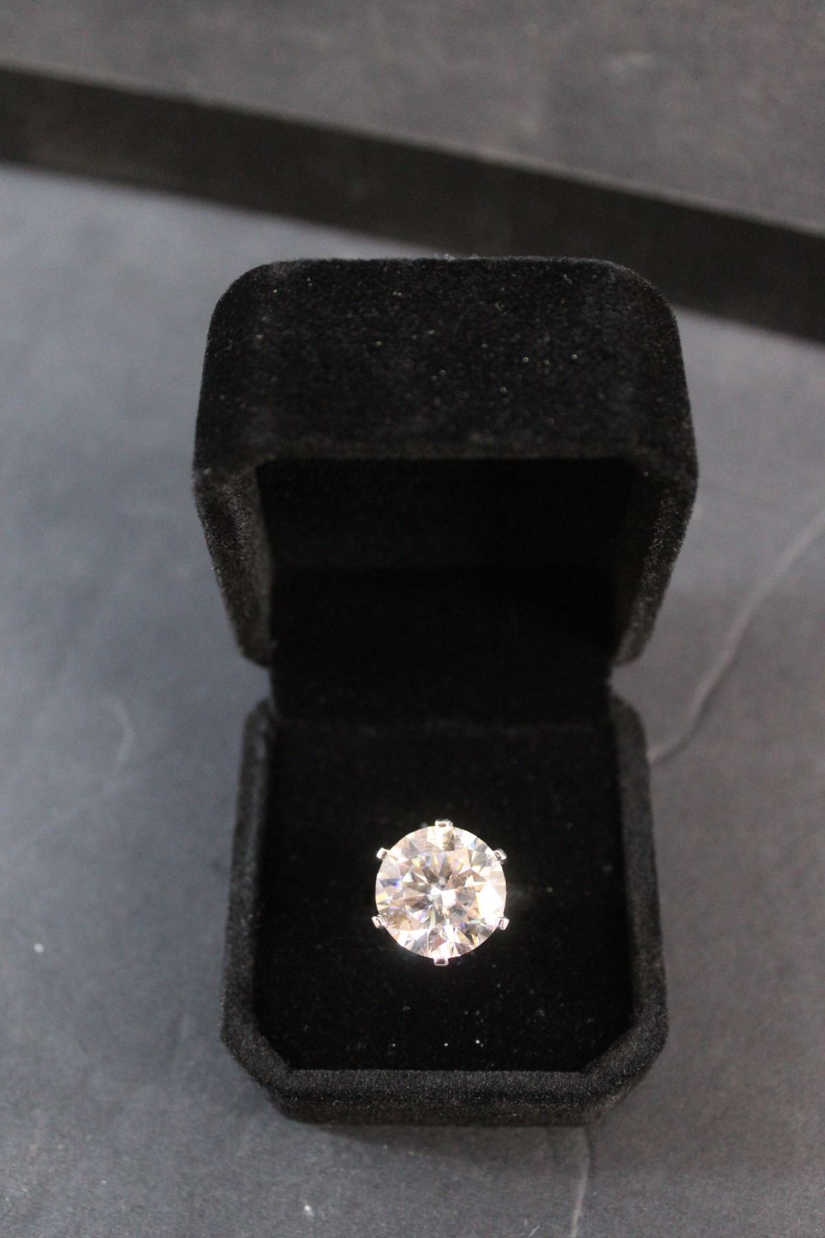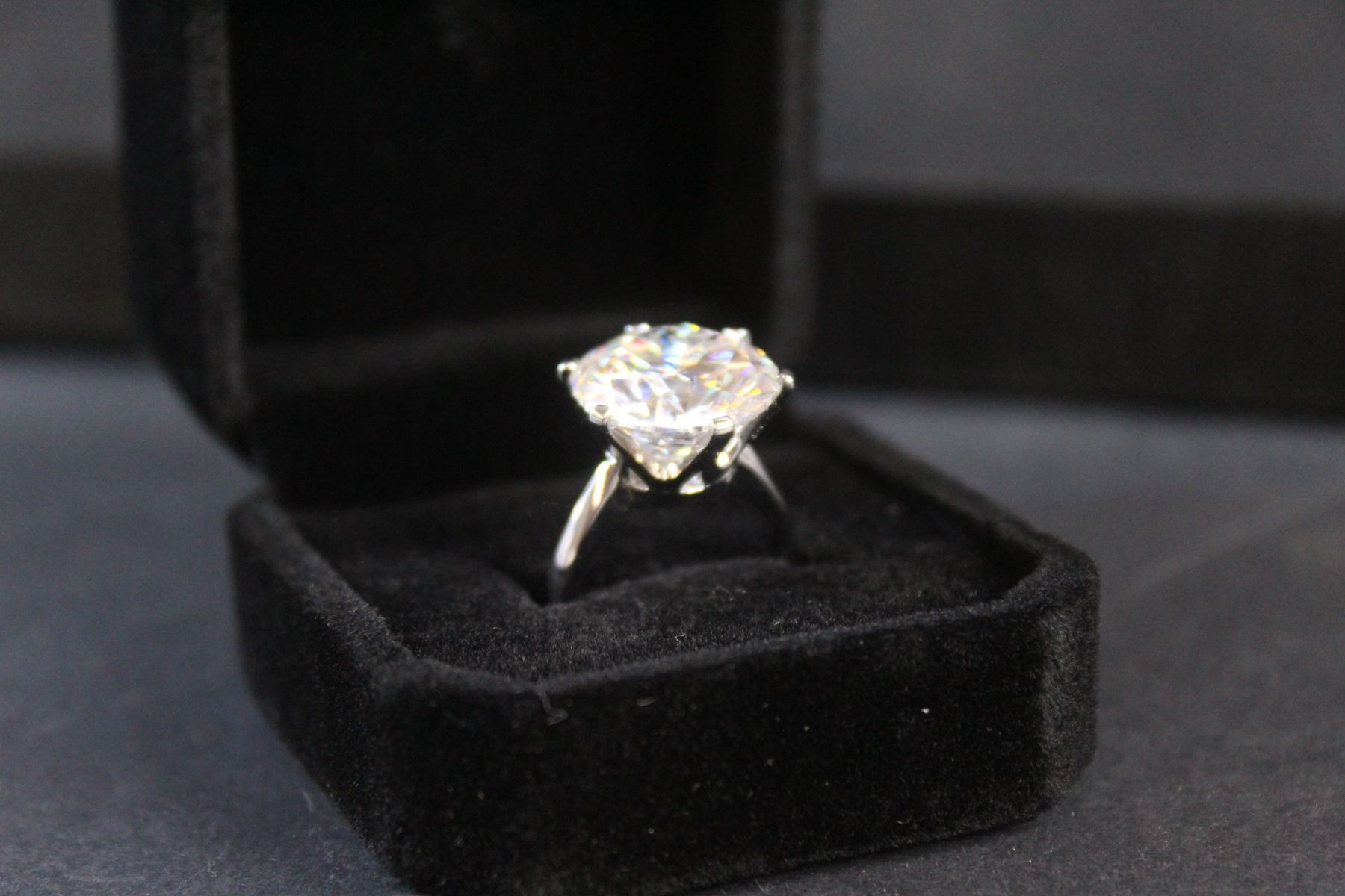 ^ 2.00 CT Round Brilliant Cut Moissanite VVS D Color Set in Center with Channel Set 12 Baguette CZ's Weighing a Total 0.25 CT TW with 22 Round Cut Cubic Zirconia Weighing a Total 0.15 CT Ring - Retail Value $1525