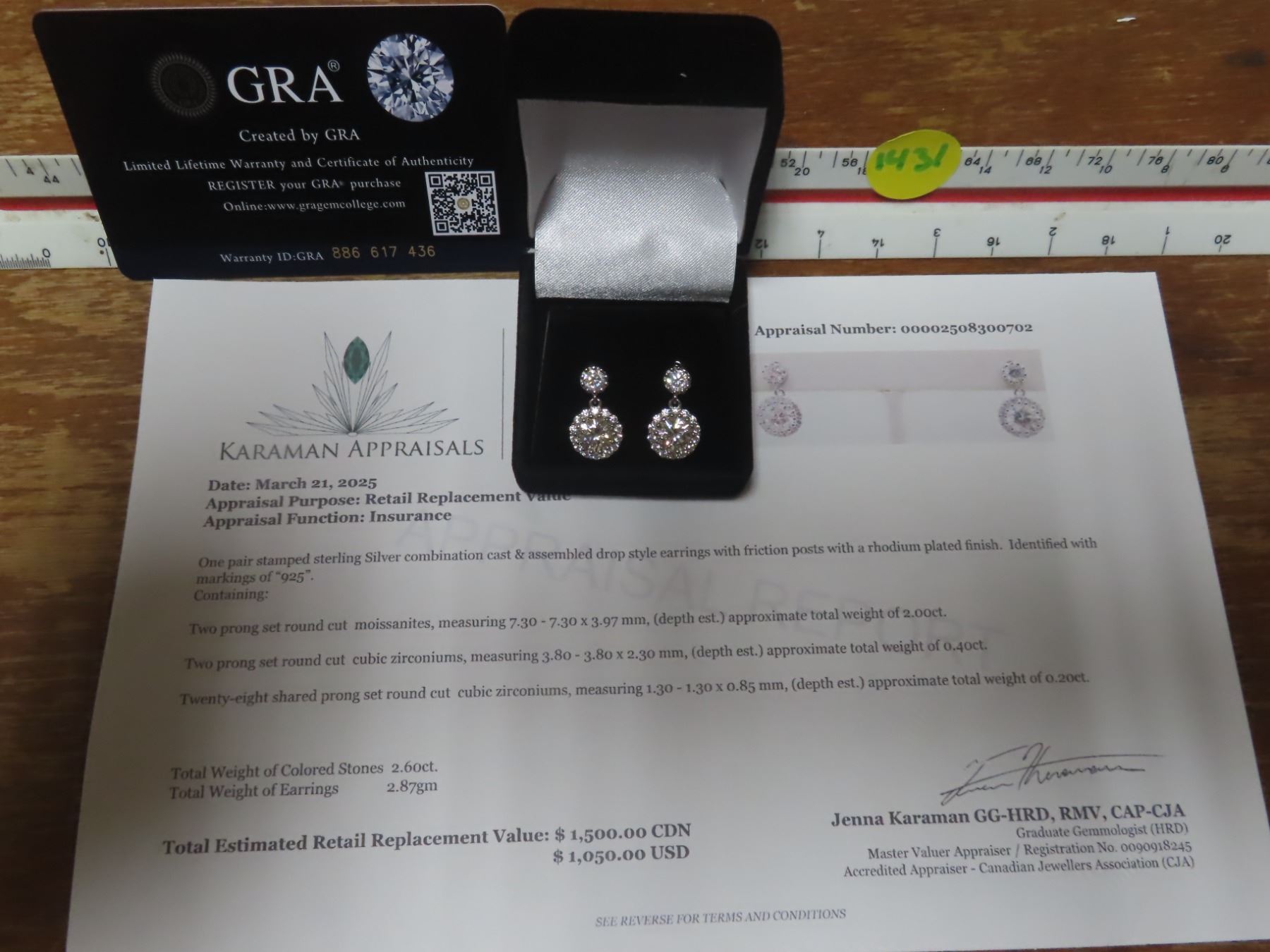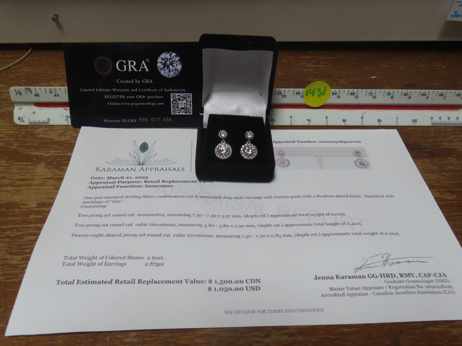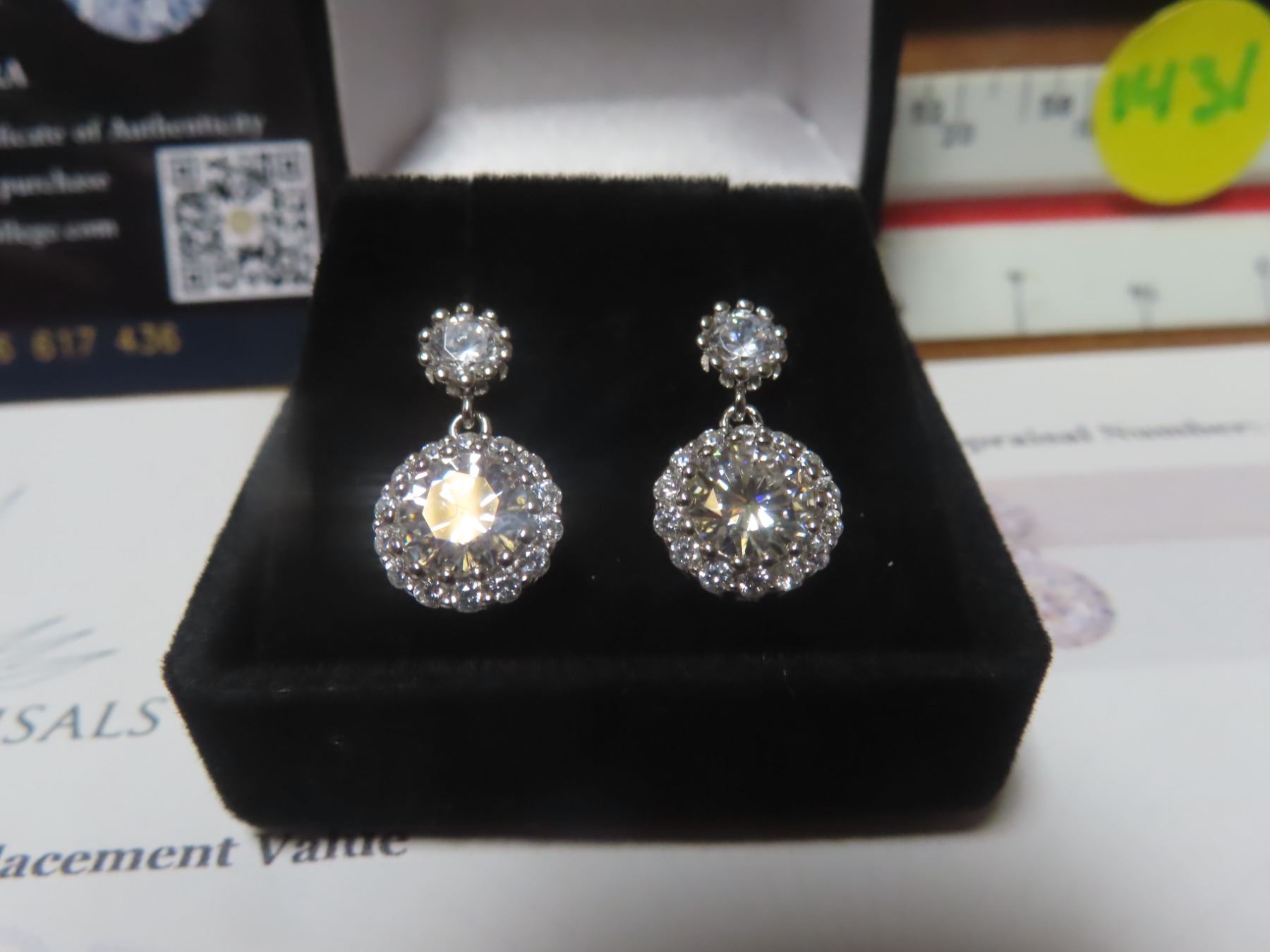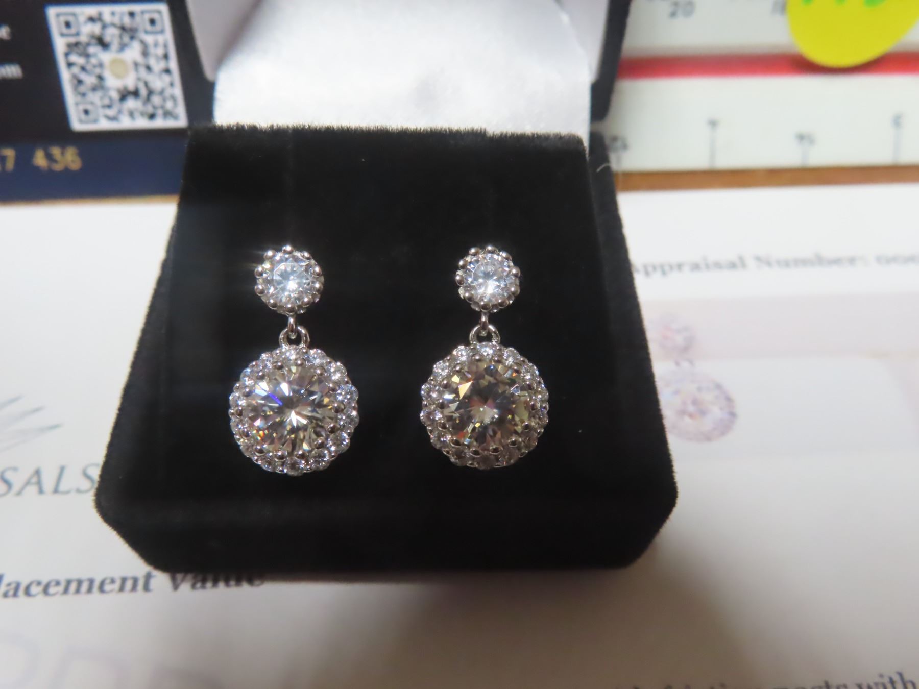 ROUND BRILLIANT CUT MOISSANITE STONES VVS D COLOR SET IN CENTER OF ROUND HALO WITH 28 ROUND BRILLIANT CUT CUBIC ZIRCONIA SET IN 925 SILVER EARRINGS RETAIL VALUE $1,500.00