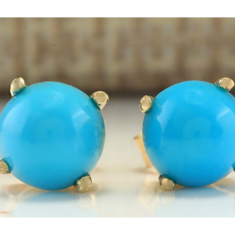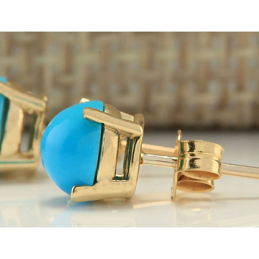 2.00 CTW Natural Blue Turquoise Earrings 18K Solid Yellow Gold