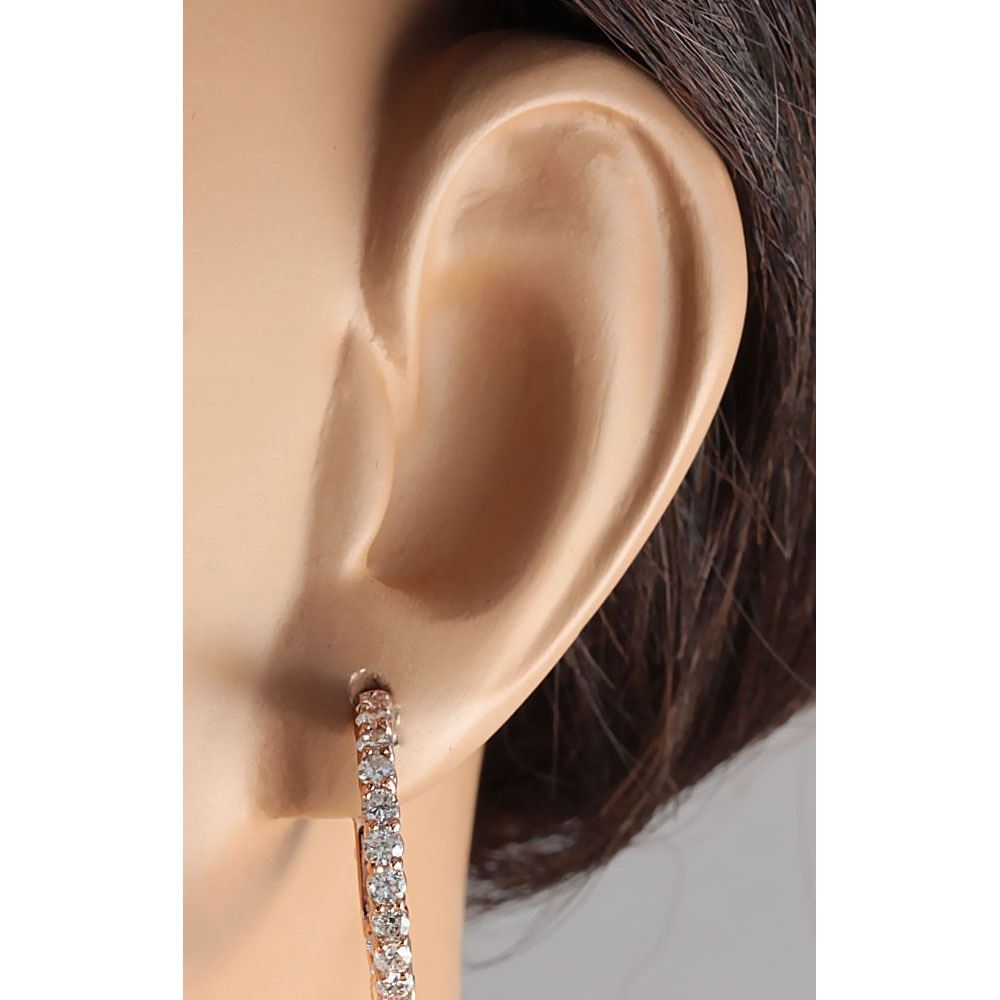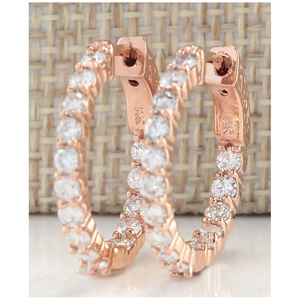 2.00 CTW Natural Diamond Hoop Earrings 14K Solid Rose Gold