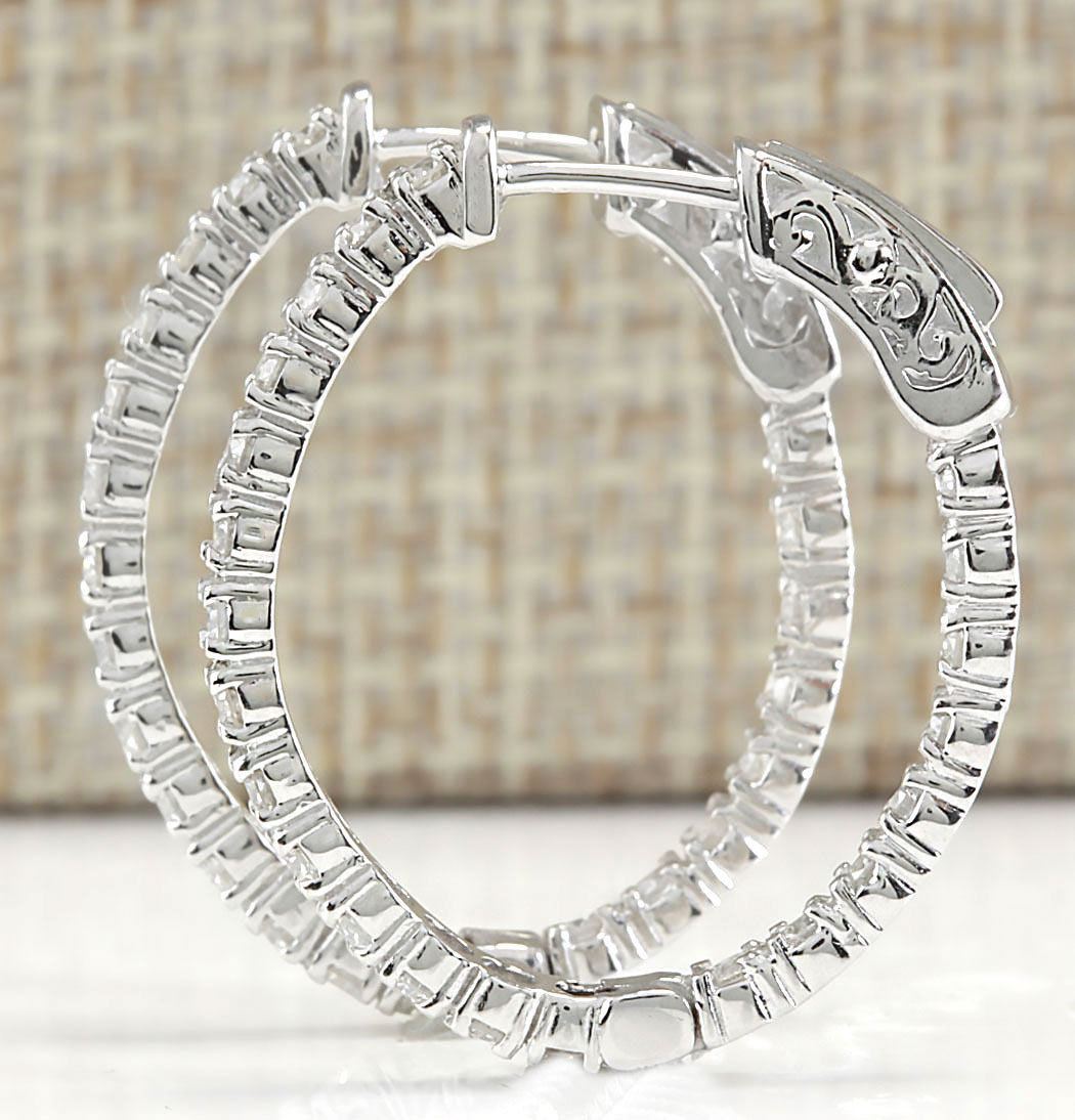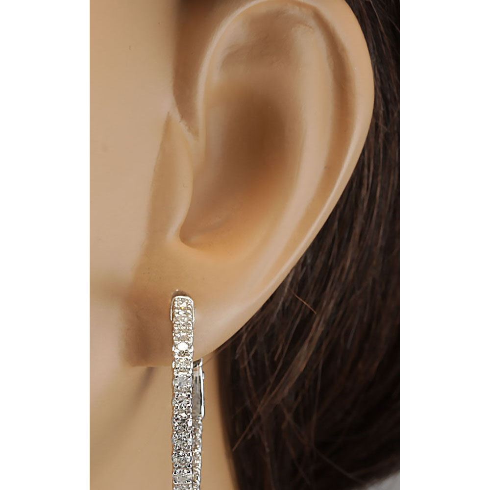 2.00 CTW Natural Diamond Hoop Earrings 14k Solid White Gold
