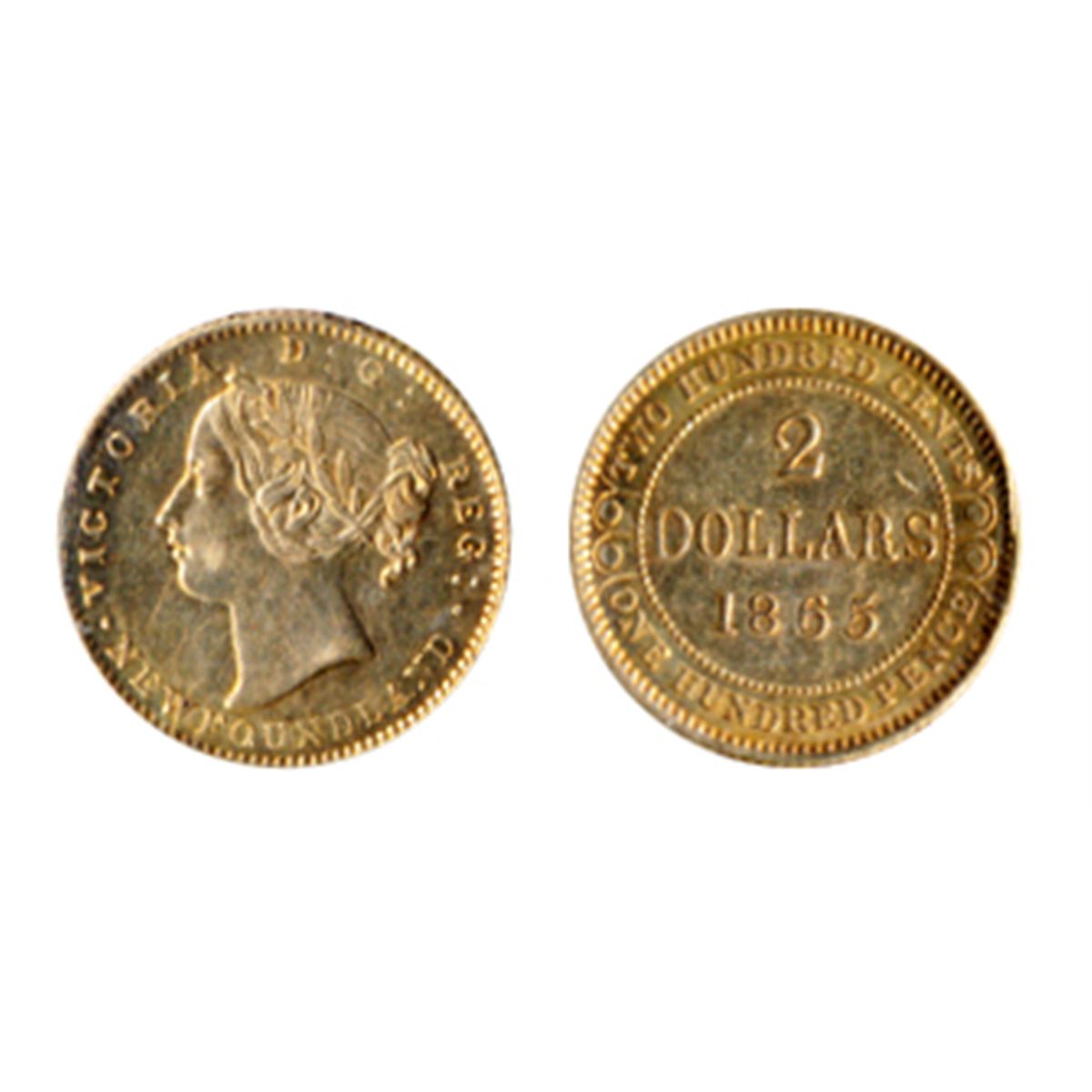$2.00 Gold. 1865. ICCS AU-55. Golden luster.