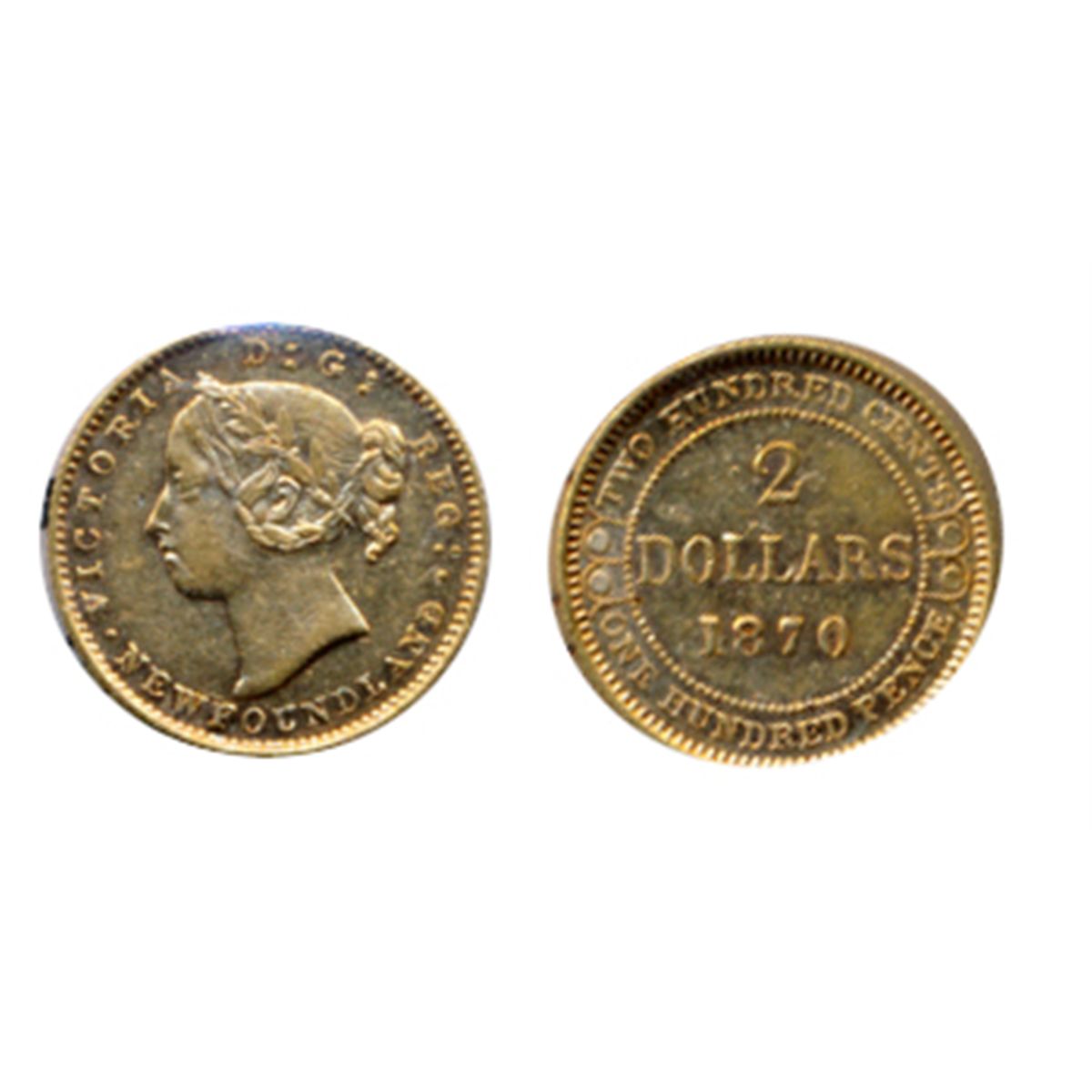 $2.00 Gold. 1870. Obv. port. #1. (3 Dot variety). ICCS graded AU-50. Orange-gold tone.