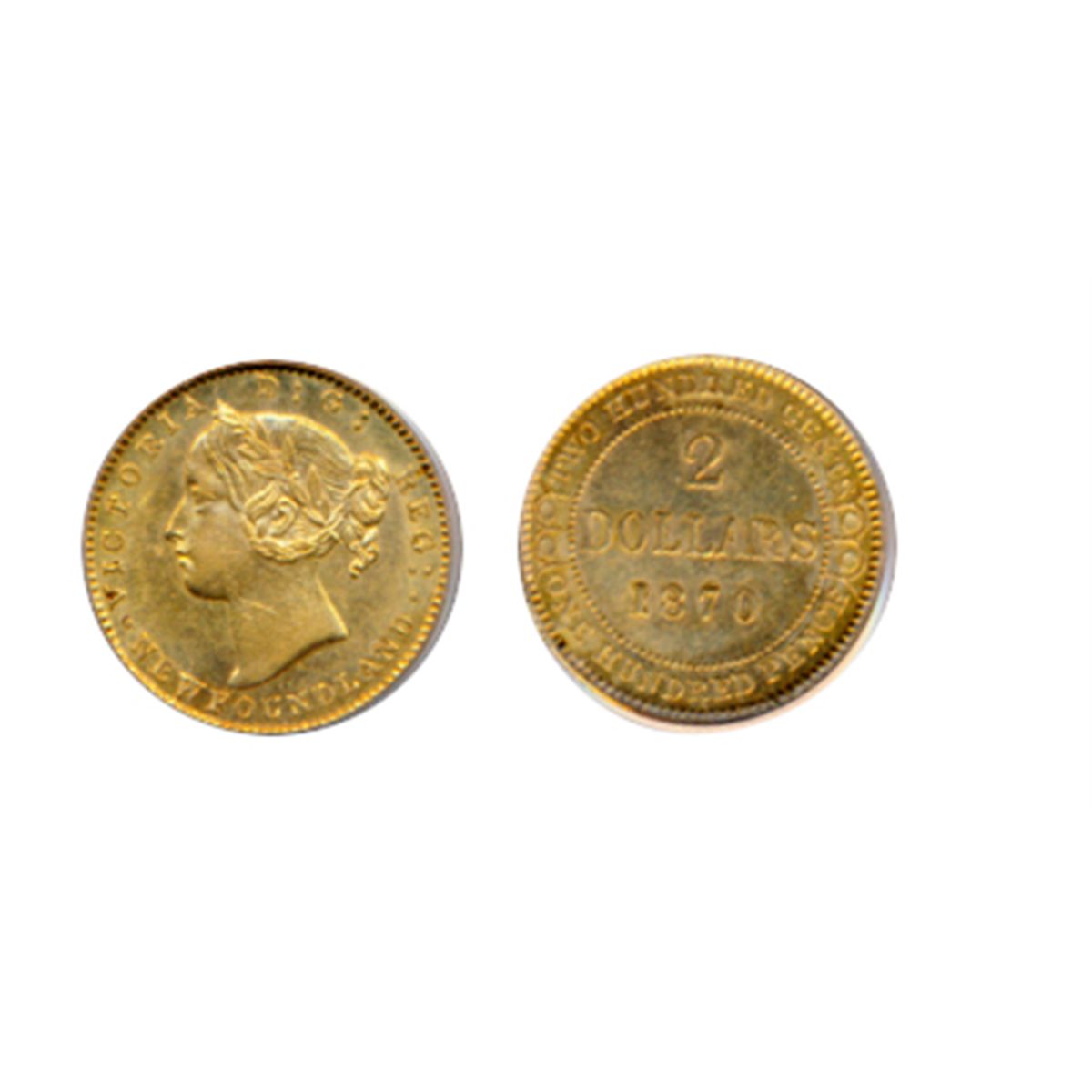 $2.00 Gold. 1870. Obv. port. #1. (3 Dot variety). PCGS graded AU-58. Lustrous yellow luster.