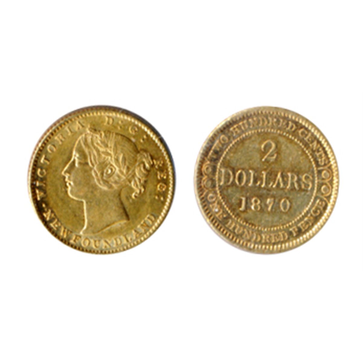 $2.00 Gold. 1870. Obv. port. #2. (2 Dot variety). Very Fine-30. Orange luster.