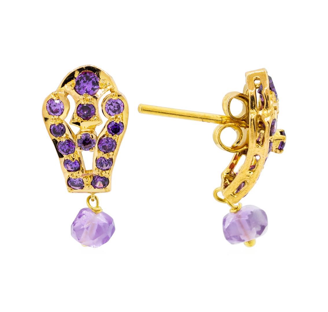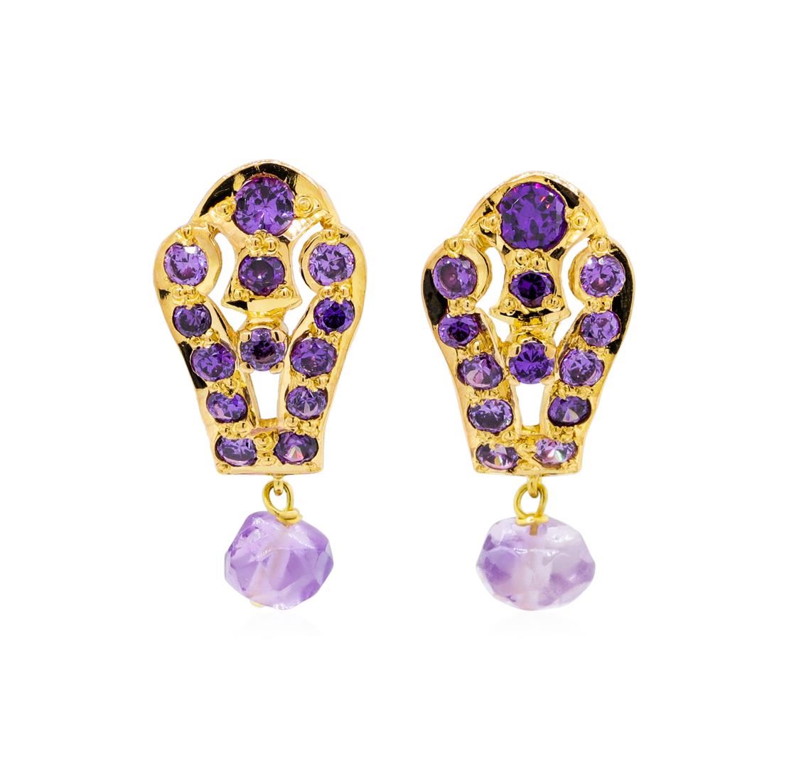 One pair of lady's earrings with friction posts featuring: 18KT yellow gold weighing 3.8 grams containing amethysts weighing 2.00ctw.
