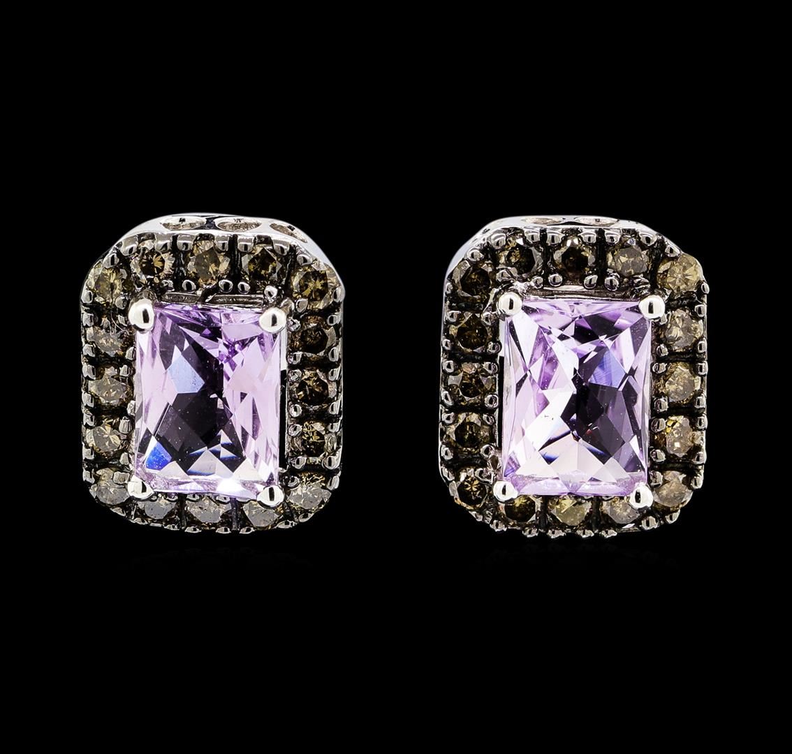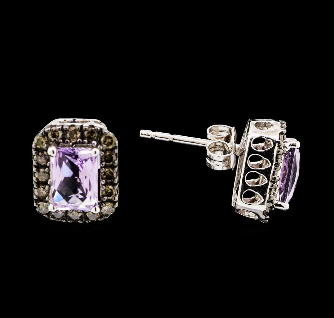 One pair of lady's earrings featuring: 14KT white gold weighing 3.6 grams containing two pink amethysts weighing 2.00ctw and diamonds weighing 0.60ctw.