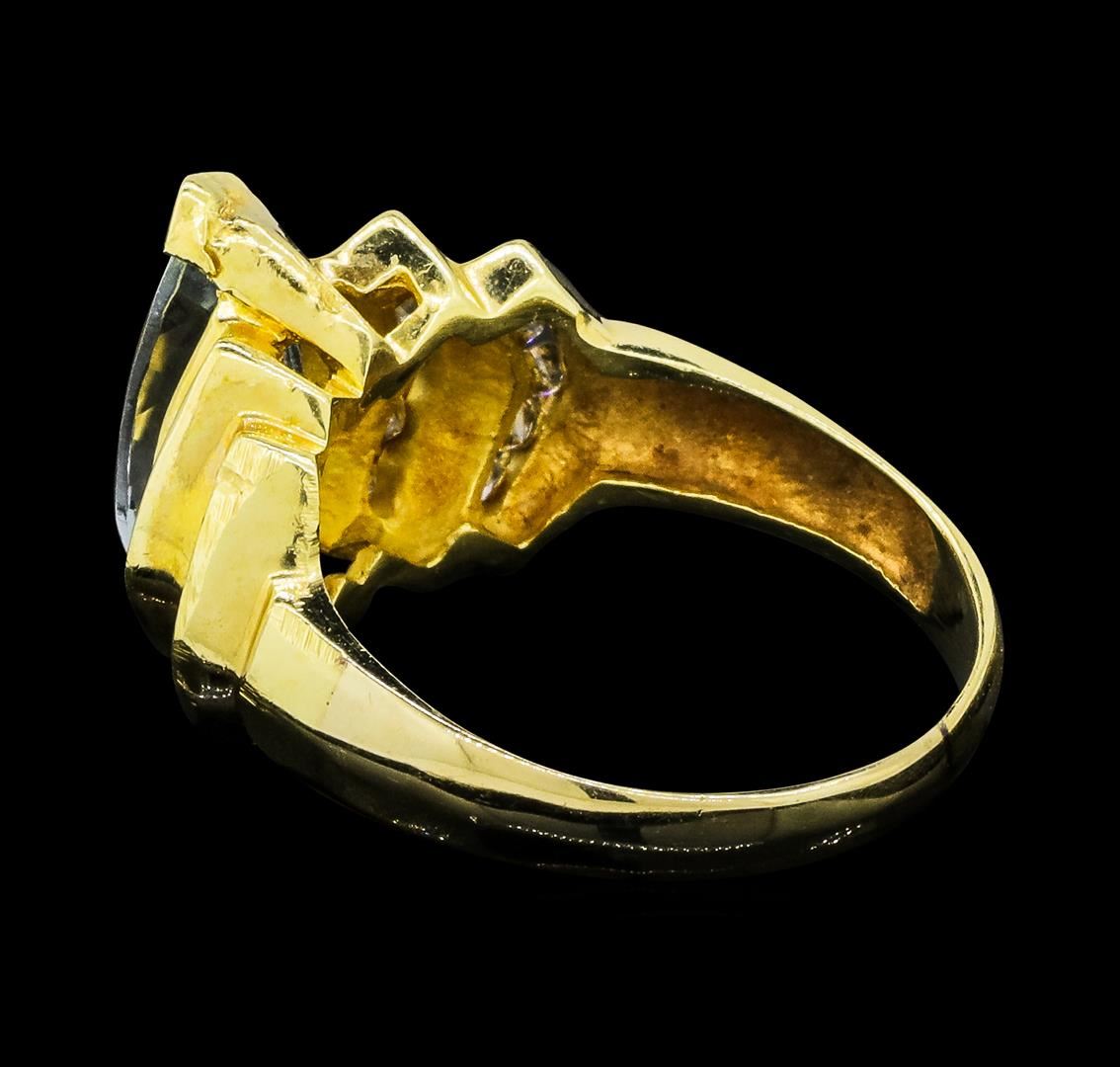 One lady's ring featuring: 14KT yellow gold weighing 4.6 grams containing one aquamarine weighing 2.00ct and diamonds weighing 0.50ctw.