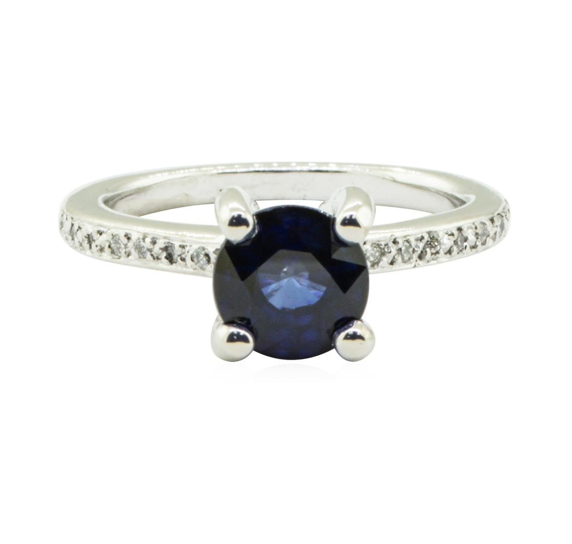 One ring featuring: platinum weighing 5.6 grams containing one blue sapphire weighing 1.75ct and diamonds weighing 0.25ctw.